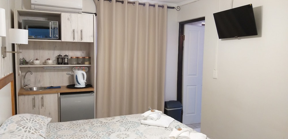 Anchorage Guest House is an up-market guest house offering comfortable accommodation for the discerning guest, who want a relaxing holiday or breakaway in Plettenberg Bay. Anchorage Guest House offers five fully-equipped bedrooms ideal for couples, business guests or individual travellers.The five rooms are all well equipped with modern luxuries and have private en-suite bathrooms. Each room includes a ceiling fan, bar fridge, tea and coffee-making facilities and crisp white bedding. Bath towels and bathroom amenities are included.There are large communal areas inside a