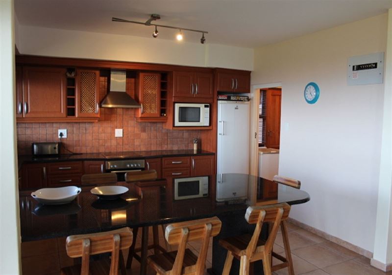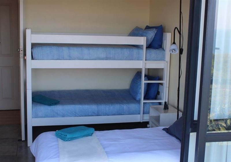 Magnificent, 4 Bedroom spacious Home with Awesome 180 degree sea views Top floor: 4 bedrooms, air conditioned lounge with stacking doors leading to an expansive deck with built in braaiBottom floor: Well equipped open plan kitchen, lounge with stacking doors opening to covered patio with built in braai and decking all round. Guest loo.Bedroom 1: 1 x Queen bed, 1 x single bed, air conditioned, en-suite bathroom with bath, shower, basin and toiletBedroom 2: 2 1 x Bunk bed, 1 x Single b with ceiling fan Bedroom 3: 2 x Single beds with ceiling fanBedroom