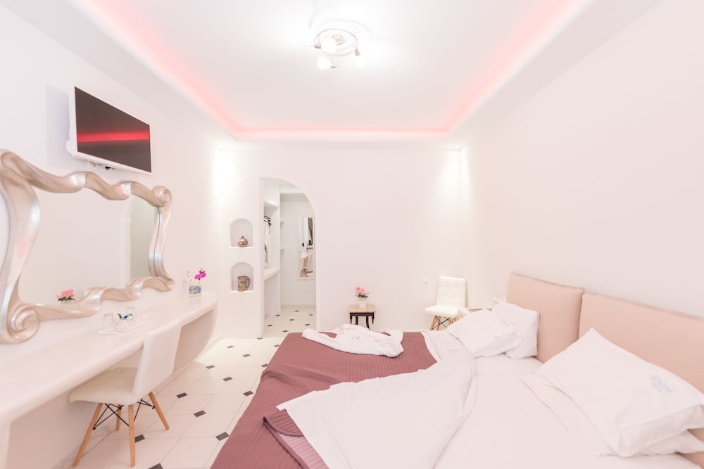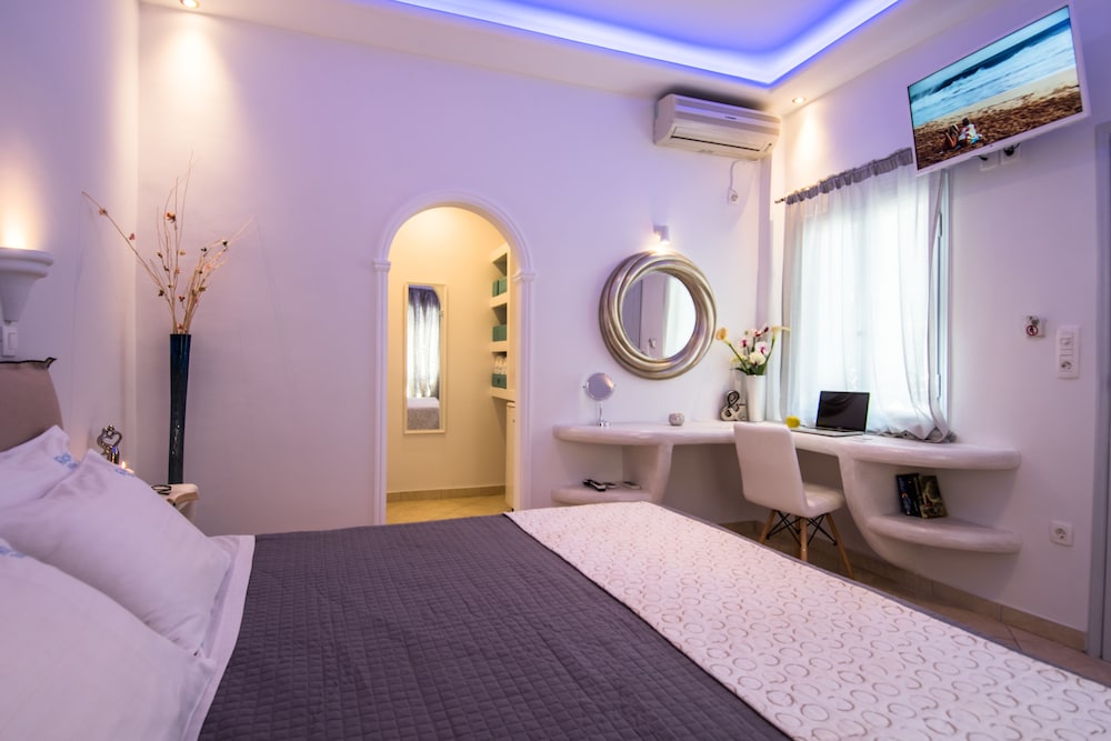 Featuring a pool with sun terrace and a snack bar, the Cycladic-style Anezina Villas lies within 250 metres from the black sandy beach of Perissa in Santorini. It offers free Wi-Fi in all areas and air-conditioned accommodation with a balcony.Fitted with wrought-iron beds and warm colours, the rooms, studios and apartments of Anezina have a fridge and a TV with satellite channels. Each unit includes a private bathroom with a hairdryer, while the studios and apartments also feature a well-equipped kitchenette.Guests can start their day with a continental or a full English breakfast served daily at the dining area. Coffee, drinks and light meals can also be enjoyed at the poolside snack bar throughout the day.Anezina Villas lies within a short walk from the centre of Perissa and within 11 km from Ormos Athinios Port. Santorini National Airport is at 14 km, while the capital Fira is 15 km away. Car rental services are provided and free public parking is possible nearby.
