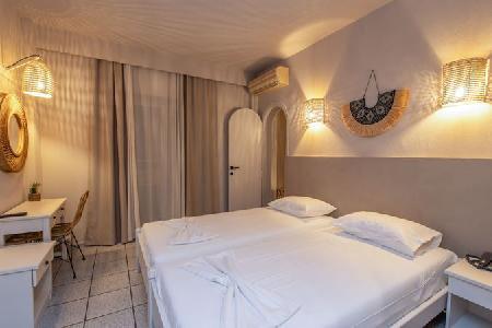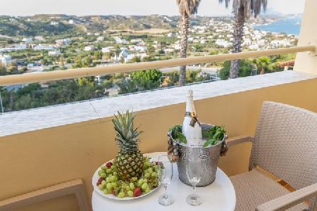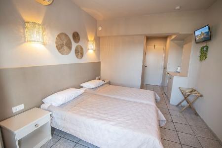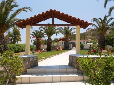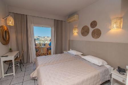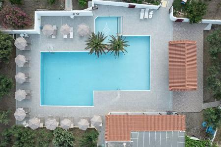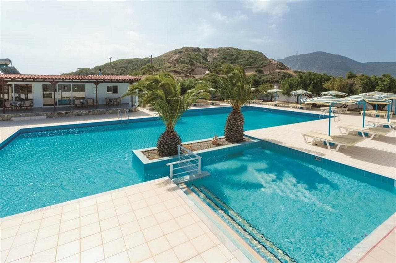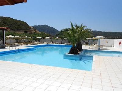 A nice family hotel in Kefalos overlooking the Bay of Kamari, 700 meter from the beach on the hill, the way up to Kefalos Village. A nice family hotel with reception area, TV lounge, bar, terrace. Family atmosphere. Rooms with sea view or mountain view, equiped with telephone and bathroom.Swimming pool with snack bar, surrounded by garden.