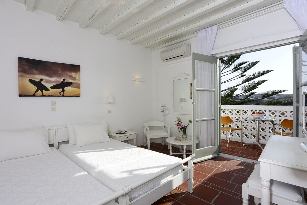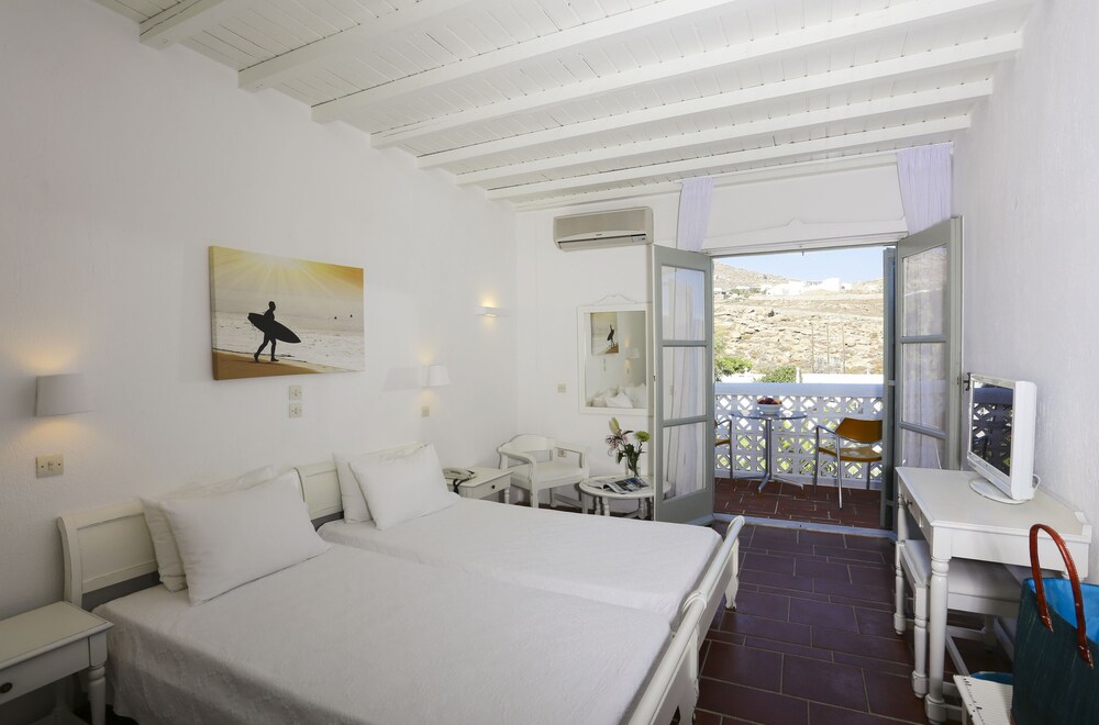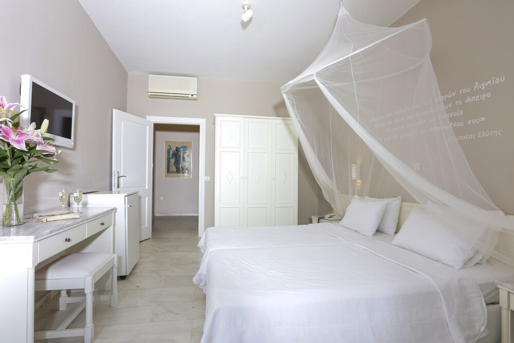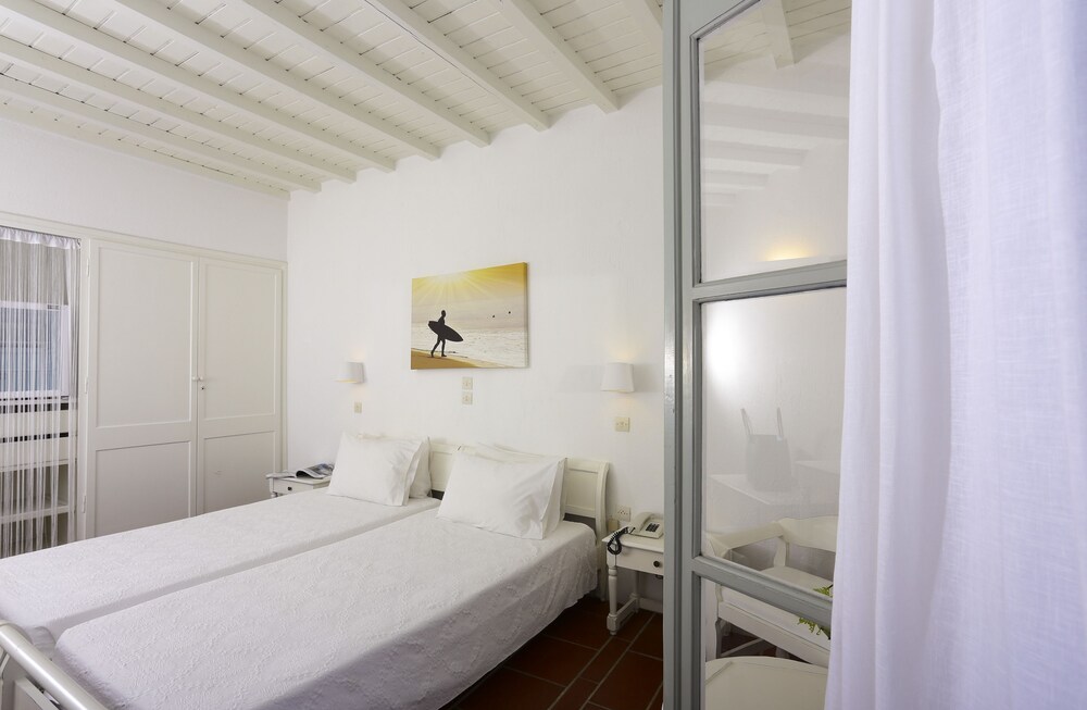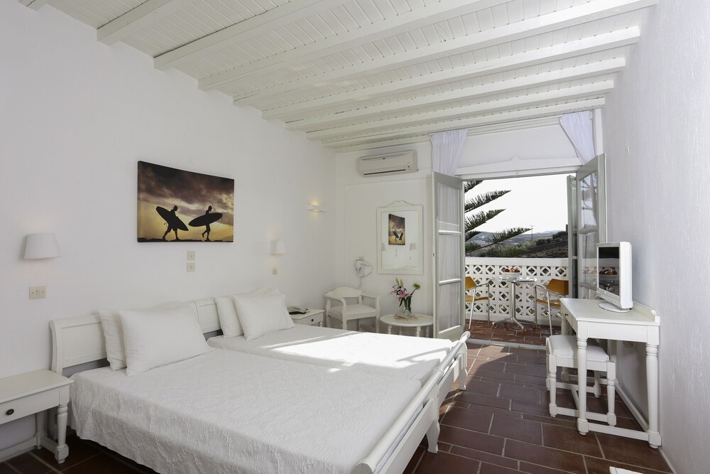 Ideally located in the prime touristic area of Kalafati Aphrodite Beach Hotel & Resort promises a relaxing and wonderful visit. Both business travelers and tourists can enjoy the hotel's facilities and services. 24-hour front desk express check-in/check-out luggage storage babysitting family room are there for guest's enjoyment. Television LCD/plasma screen closet air conditioning wake-up service desk can be found in selected guestrooms. Take a break from a long day and make use of yoga room hot tub private beach outdoor pool diving. Aphrodite Beach Hotel & Resort combines warm hospitality with a lovely ambiance to make your stay in Mykonos unforgettable.