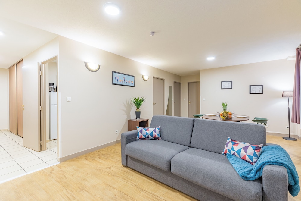 Renovated in 2010, this brand-new aparthotel offers 103 T1 to T3 flats and a charming ambience which remains true to the local architecture and the quality and reputation of this national chain.* The reception area is open between 08.00 – 12.00 and 15.00 – 19.00 hours Monday to Friday, 08.00 – 12.00 and 14.00 – 16.00 hours on Saturday and closed Sunday’s & Bank Holidays. For arrivals outside the reception opening times guests need to call the hotel in advance to obtain an access code.