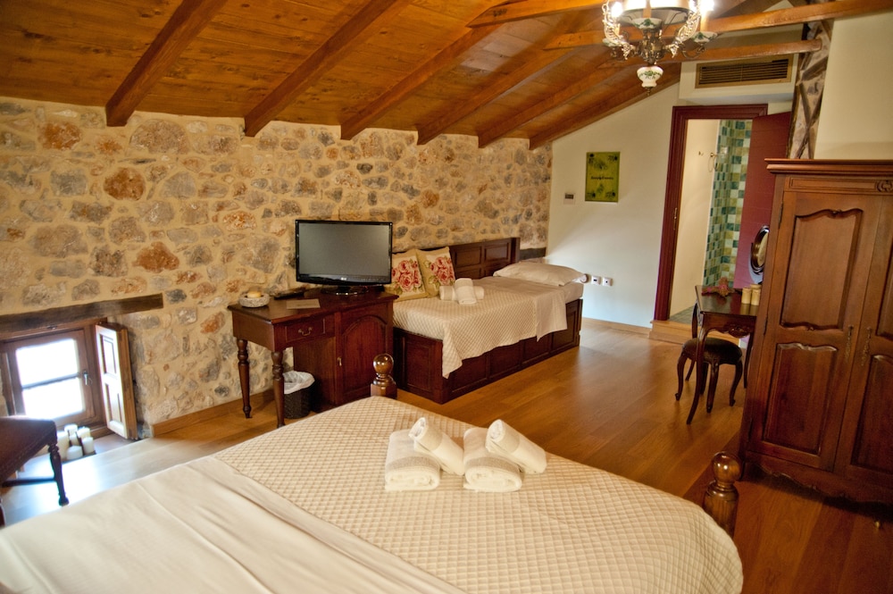 Located in Leonidio, Archontiko Hatzipanayiotis is within a 15-minute drive of Church of Leonidiou and Poulithra Beach. This 4-star hotel is 3.8 mi (6.1 km) from Monastery Agiou Nikolaou Sintzas and 5.1 mi (8.2 km) from South Leonidiou Beach. Make yourself at home in one of the 12 air-conditioned rooms featuring refrigerators and LCD televisions. Rooms have private furnished lanais. Complimentary wired and wireless Internet access keeps you connected, and digital programming provides entertainment. Private bathrooms with showers feature designer toiletries and hair dryers. Take in the views from a rooftop terrace and a garden and make use of amenities such as complimentary wireless Internet access. Enjoy a meal at the restaurant or snacks in the coffee shop/café. The hotel also offers room service (during limited hours). Quench your thirst with your favorite drink at the bar/lounge. A complimentary buffet breakfast is served daily from 7:30 AM to 10 AM. Featured amenities include complimentary wired Internet access, dry cleaning/laundry services, and multilingual staff. Free self parking is available onsite.