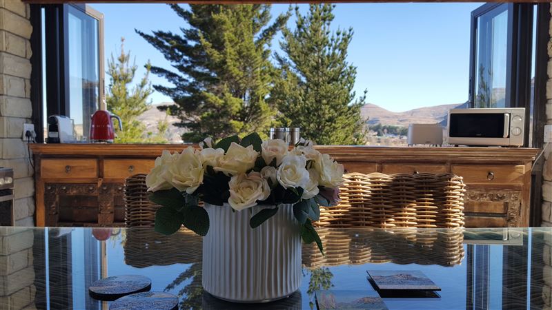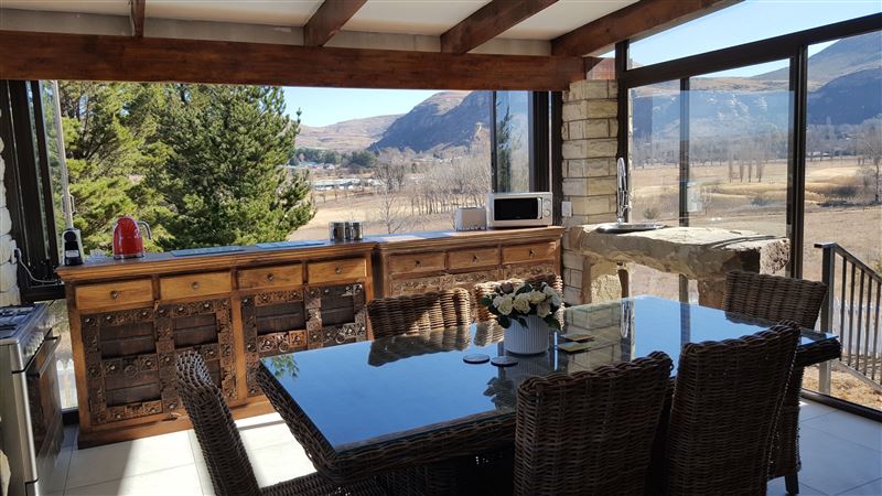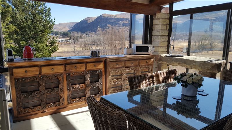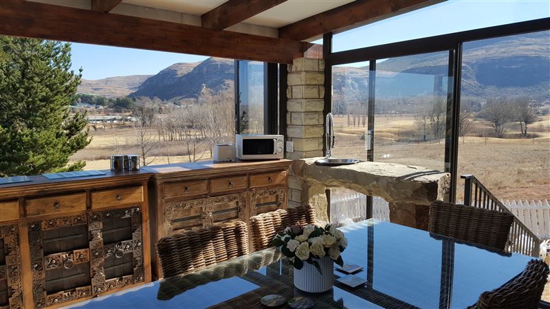 PLEASE NOTE THAT THIS PROPERTY NOW BELONGS TO THE R COLLECTION LUXURY PROPERTY BRAND GUARANTEEING A STANDARD. Arrarat is a self-catering unit that accommodates up to 4 guests. This property is the only property that sits in a cul de sac in the best position on the estate. This really is the most beautiful stand in the estate, with unobstructed 360-degree views of mountains, and overlooking the golf course, fishing lake and Clarens.The property consists of 2 large well proportioned en suite bedrooms.In stark contrast to other golf estate properties, there has been no expense s