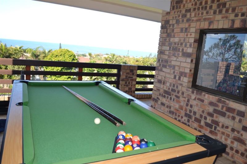 Ashton Manor is a lovely face brick home with sea views comprising the main house with six bedrooms and a separate one-bedroom garden apartment with an adjacent double en-suite room. The home can accommodate three or four families and both children and pets are welcome.The large open-plan kitchen leads into the dining room which in turn leads out onto the patio with barbecue facilities. Features include DStv, a pool table on the upstairs patio, three garages, and sea views from four of the bedrooms, the kitchen, lounge and patio. In addition, a large swimming pool is