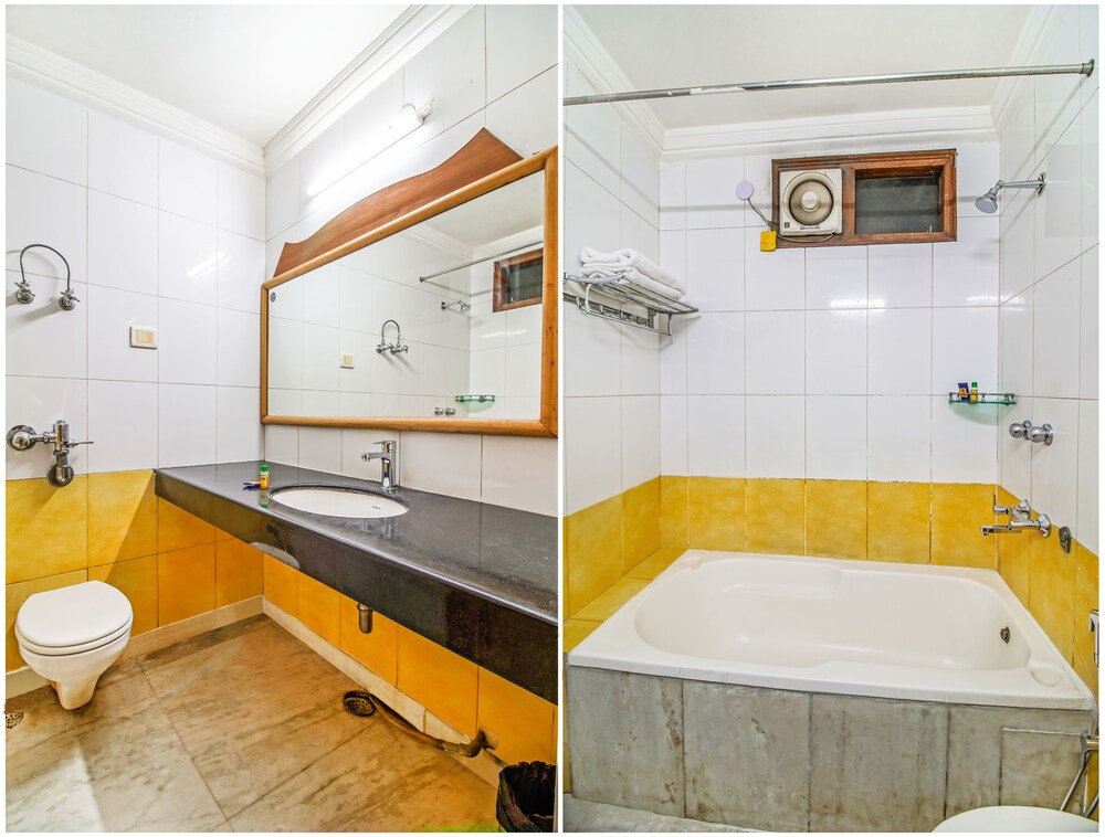At the hotel there is a reception, doctor (on call), roof top restaurant, room service, safe deposit box, luggage room, mobile phone rental and fax service. Room amenities are A/C, attached bathroom and ceiling fan. Address: 12A/34, W.E.A, Karol Bagh , New Delhi 110005, India