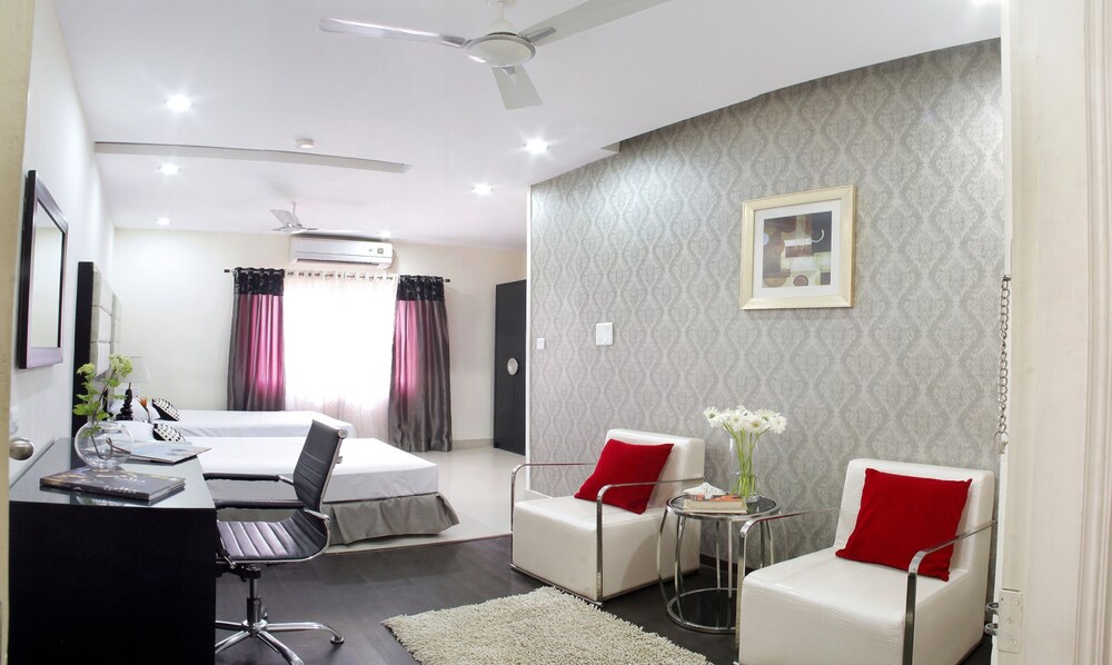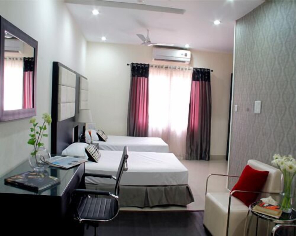 The 2-star At Home Suites offers comfort and convenience whether you're on business or holiday in Hyderabad. The hotel offers a high standard of service and amenities to suit the individual needs of all travelers. All the necessary facilities including 24-hour room service 24-hour front desk luggage storage valet parking car park are at hand. Television LCD/plasma screen internet access – wireless air conditioning heating desk can be found in selected guestrooms. The hotel offers various recreational opportunities. A welcoming atmosphere and excellent service are what you can expect during your stay at At Home Suites.