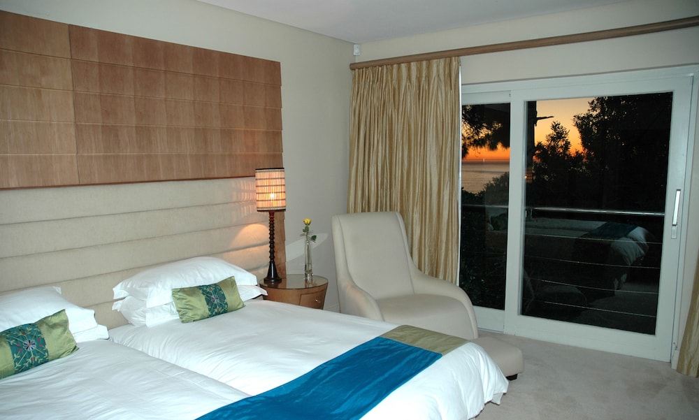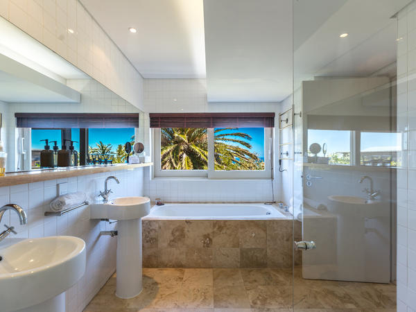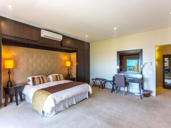 Upmarket, exclusive villa in Camps Bay, with four en-suite sea-facing rooms and one en-suite garden room with an outside shower.