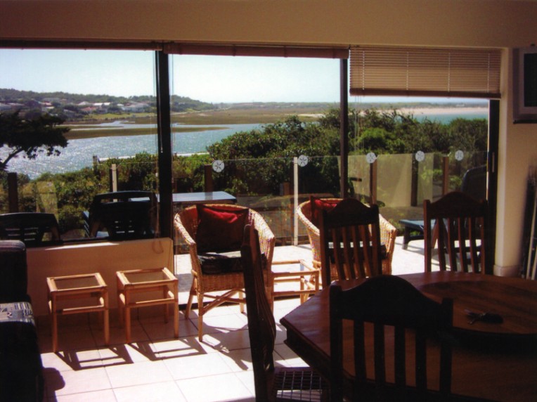 At The River offers self-catering accommodation in two self-catering houses each sleeping six people. These two houses are available as individual units or together for larger groups. The houses have beautiful view of the river and sea. Both of the houses have three bedrooms, two bathrooms, a lounge/dining room and kitchen with a stove and an oven, a microwave, a fridge/freezer and a dishwasher. The living area has a built-in braai area and a round yellowwood and blackwood table with chairs. The lounge has a TV with DStv, a DVD player and sound system.There is one lock