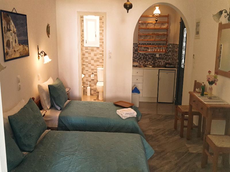 Located in a quiet residential area of a traditional fishing village, this hotel is only a 15-minute drive from the Port of Parikia and a 5-minute walk to the Piperi and Piperaki beaches. The building overlooks the impressive bay with its marina and Venetian castle. The village of Naoussa is a very popular and lively destination during the summer months with many shops, restaurants, bars & nightclubs. The studios and apartments are convenient for families and groups of friends, as children and pets are welcome. All units offer a kitchenette, where guests can prepare food, and an individual veranda or balcony.