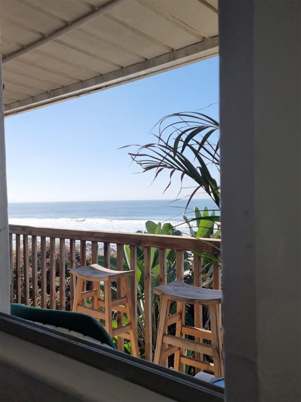 Self catering studio apartment (bunk beds can accommodate two extra guests). The 24 hour security controlled complex is across the road from the beach and very close to supermarkets and restaurants. The flat has no TV or aircon, but does have free uncapped WiFi (10 mb line), fans, a microwave, toaster, kettle and fridge. There are two small flights of stairs from the parking bay to the flat. Sit on the balcony and watch the morning sunrise over the ocean or take a 1 minute walk to some of the most beautiful beaches in the country. There are Swimming pools on the premises with 24 hr security a