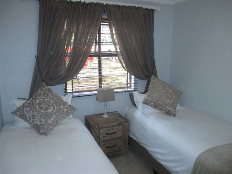 Ballito Bentley Estate 15 is located in Ballito, a popular town along the Dolphin Coast. Bentley Estate is a short walk to the beach, and is the ideal base for visitors coming to enjoy the Indian Ocean.Apartment 15 has two bedrooms, one room with a double bed and the second twin beds. A sleeper couch is available in the lounge. The living area is open-plan and beautifully furnished. It consists of a lounge with a TV with DStv Compact, and a fully equipped kitchen fitted with all the necessary appliances and utensils. The living area extends to a patio with outdoor furni