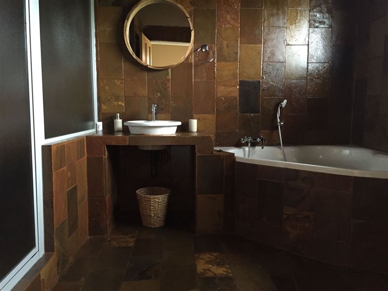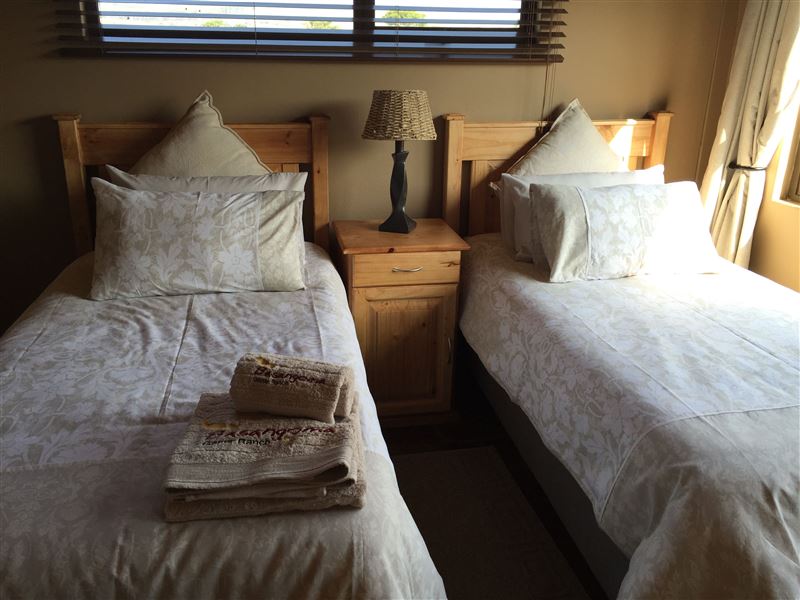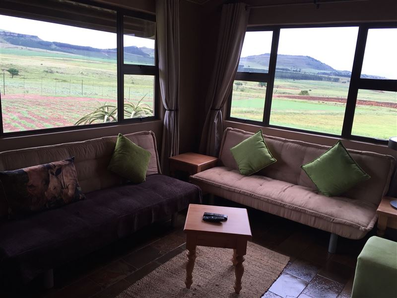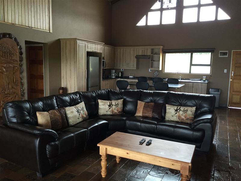 The 1200 hectare Basangoma Game Ranch is situated in Northern KwaZulu-Natal between Vryheid and Paulpietersburg, and blessed with a moderate climate all year round. This malaria free game ranch offers a luxury chalet with spectacular views of the surrounding bush and mountains from both the sheltered patio and the open-plan living room.The open-plan kitchen is fully equipped for self-catering and includes all crockery, utensils, pots and pans. There is a four-burner gas hob, a microwave, a kettle, a toaster and a fridge with freezer. Dish-washing liquid and dishcloths a