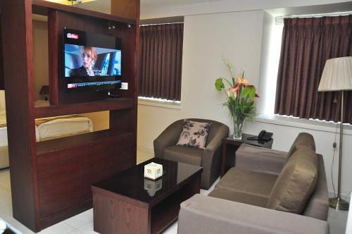 Just a 30-minute drive from Queen Alia International Airport Bashtamal Hotel Suites is located in Amman. Free WiFi is available in all areas.Rooms here will provide you with a flat-screen TV air conditioning and a minibar. There is also an electric kettle. Featuring a shower private bathrooms also come with a hairdryer and a bathrobe. Extras include a seating area and satellite channels.At Bashtamal Hotel Suites you will find a 24-hour front desk. Other facilities offered include luggage storage an ironing service and a laundry. Free private parking is possible on site.