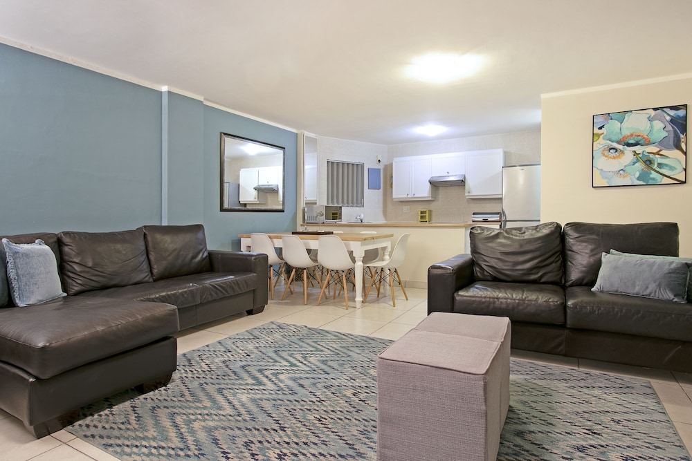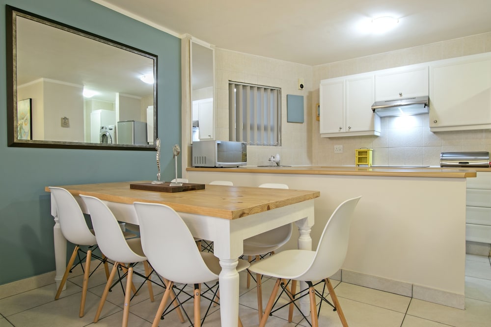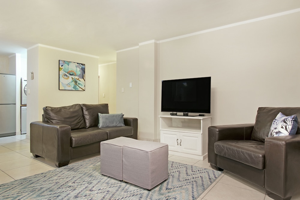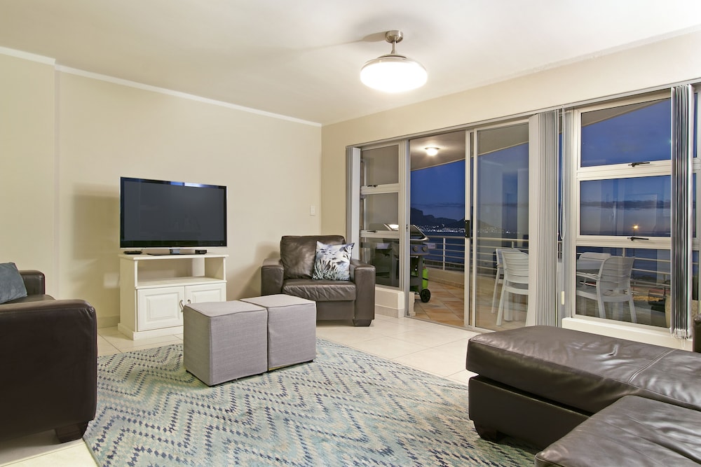 Ideal for small families and business people, this beautifully decorated apartment boasts panoramic sea and mountain views from the living room, bedroom and balcony. The apartment has two bedrooms and one bathroom, and sleeps four guests. Linens and towels are provided, and the apartment has a DStv Compact Bouquet and free Wi-Fi for our guests' use. There is a lovely balcony too.Amenities provided include a dryer, hair dryer, microwave, coffee maker, oven, grill, stove, kitchen utensils, toaster and mini-fridge.Note: There is a water purification works nearb
