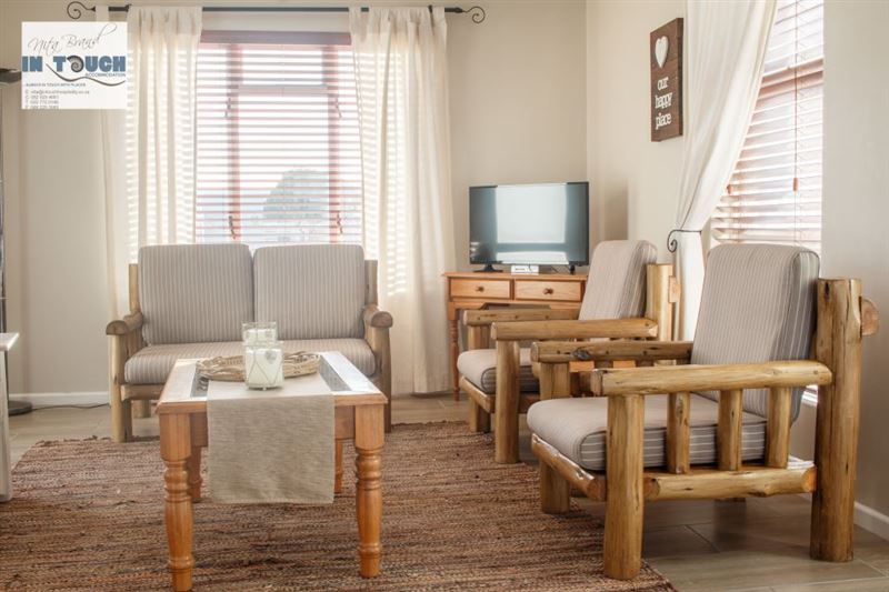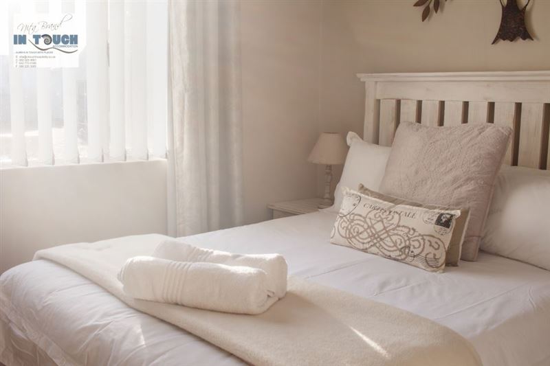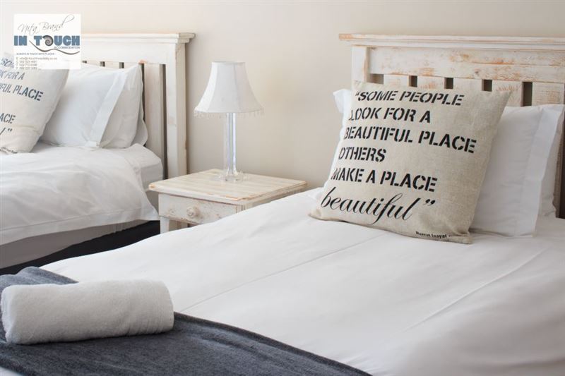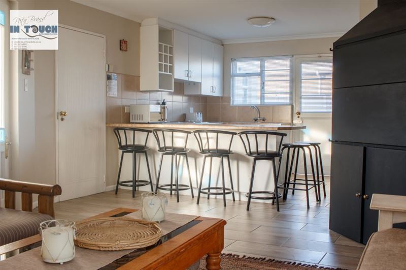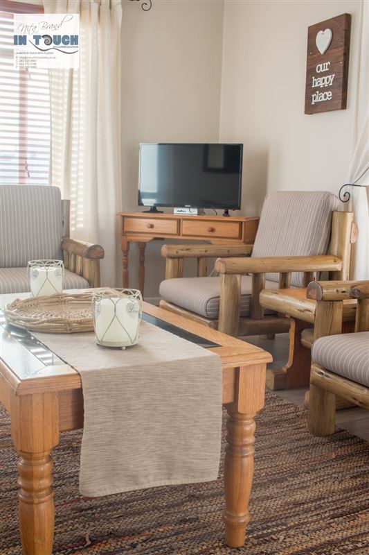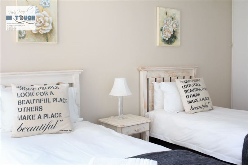 Bayside is situated in the lovely town of Langebaan and is a mere 100 m from the beach. The house is located in a small secure complex that is fenced and remote controlled, and consists of three bedrooms and two bathrooms, of which one is en-suite.The house also features a fully equipped kitchen with a dishwasher, a living area with full DStv, a built-in braai, and a single garage with a washing machine. All linen and bath towels are supplied, however guests need to bring their own beach towels. The backyard is fully paved, with a covered braai area and an outside shower with ho