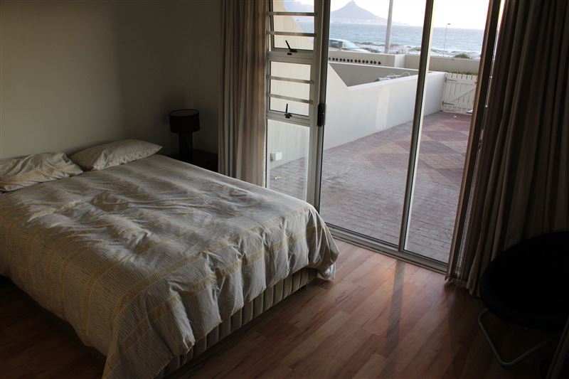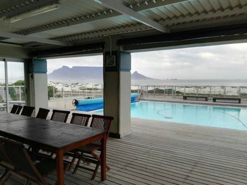 Boasting the most beautiful uninterrupted views of Table Mountain, this beachfront flat is located in a very safe complex with 24-hour security.The apartment comprises two bedrooms with cupboard space, a well-appointed lounge, and a bathroom with both a bath as well as a shower. The bathroom can also be accessed from the main bedroom. Both bedrooms are fitted with a comfortable queen-sized bed. The lounge can sleep an additional two guests on a sleeper couch. The complex features a beautiful pool sheltered from the wind and right in front of a beach and a park for chil