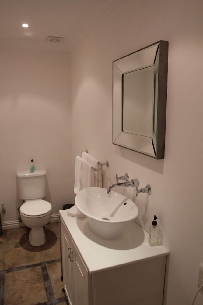 The stately Beauclair manor is situated on the banks of the Eerste River, overlooking the statue of South African rugby legend Danie Craven and close to the historic centre of Stellenbosch. The village centre can be reached by a comfortable stroll along the oak-lined river bank. Originally built in 1920, the house retains the charm and ambience of that era. The cottage is decorated to match the manor’s elegant flair. The stylish COTTAGE include air-conditioning, satellite TV, internet access and a safe. Enjoy nearby golf courses, lovely walking trails, excellent restaur