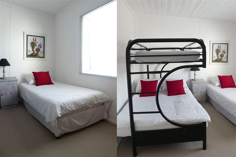 Bella Vista offers a self-catering beachfront apartment sleeping up to six guests. Langebaan is an idyllic little seaside town on the South African West Coast. It is located at the edge of the tranquil Langebaan Lagoon, just over 120 km north of Cape Town.Bella Vista is situated on the top floor of an original 1900's building. The apartment comprises one double bed, one single bed, one double bunk bed, one bathroom with a shower, an open-plan kitchen, a scullery with a washing machine, a lounge with local TV reception and a DVD player. There is also a balcony with braai faciliti