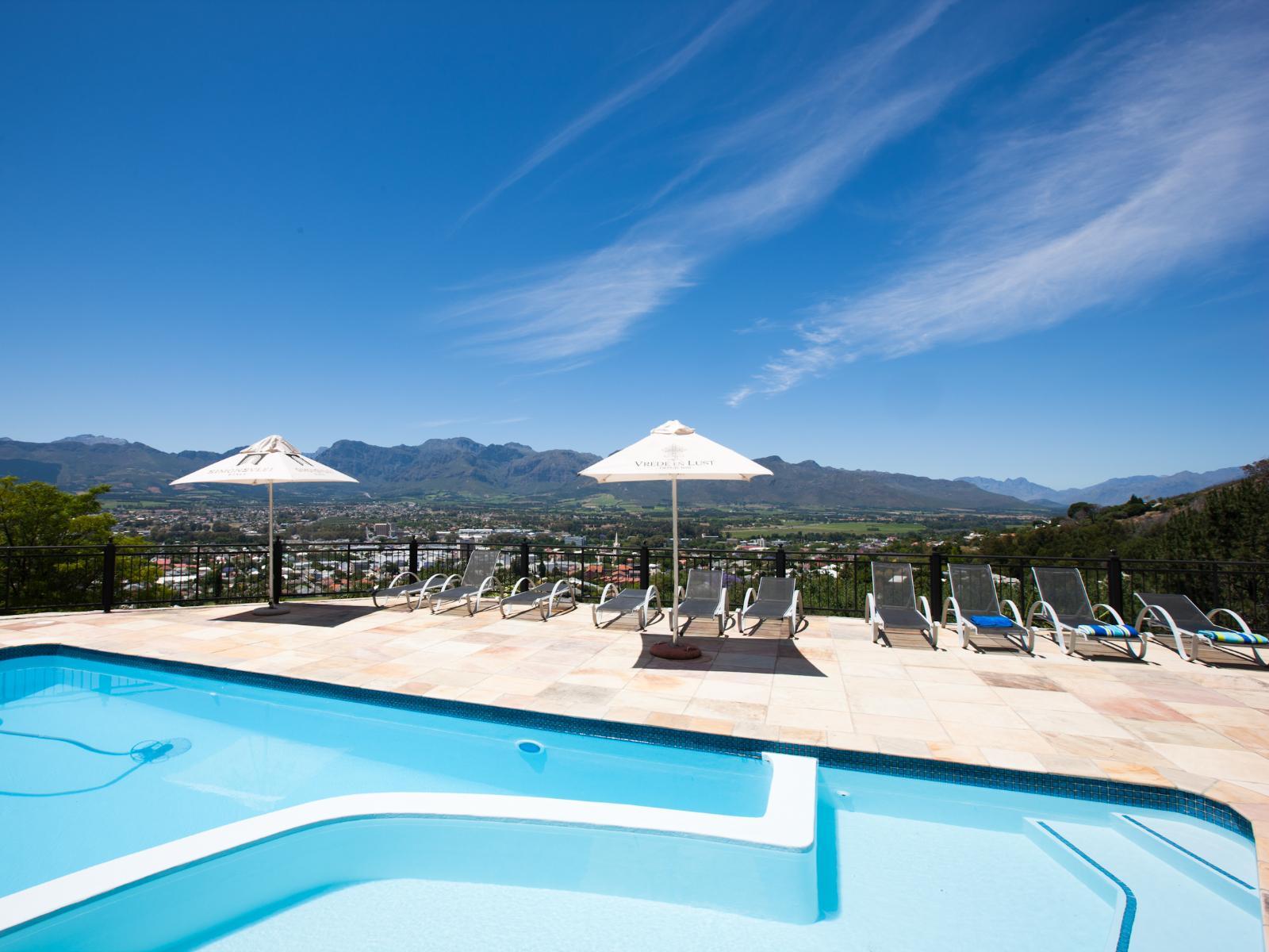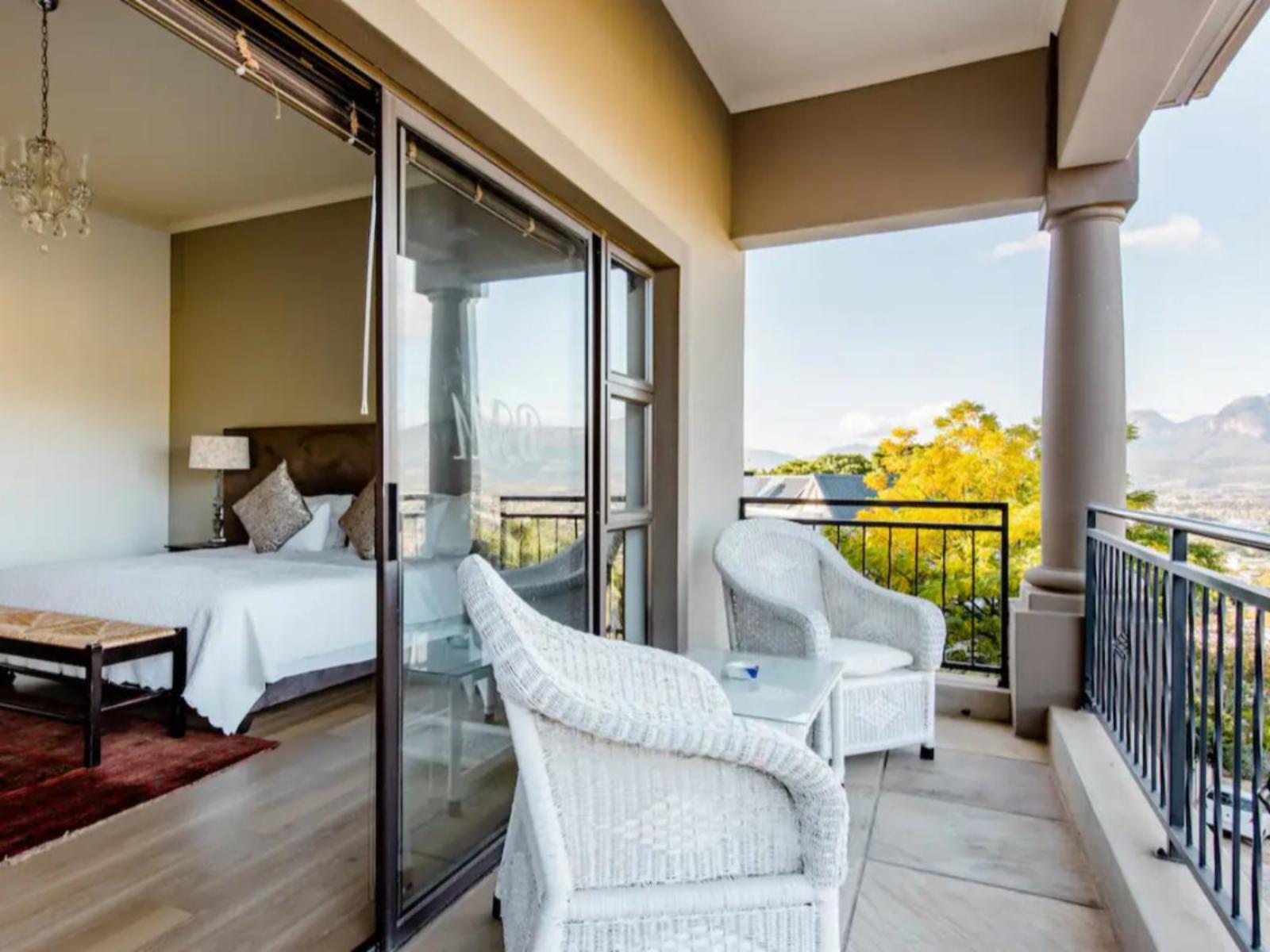 BelMonte Guest House welcomes you to Paarl. This Mediterranean style guest house with exceptionally beautiful views of the surrounding mountains and the town is situated against the slopes of Paarl mountain on 8 hectares, offering a tranquil getaway.Walk through the estate where you will find fynbos and proteas, indigenous to this region. Various grape cultivars are also planted on the estate. We are situated close to the town centre, shops, restaurants, wine tasting estates, and golf courses.BelMonte Guest House offers six spacious double rooms with luxury en-suite ba