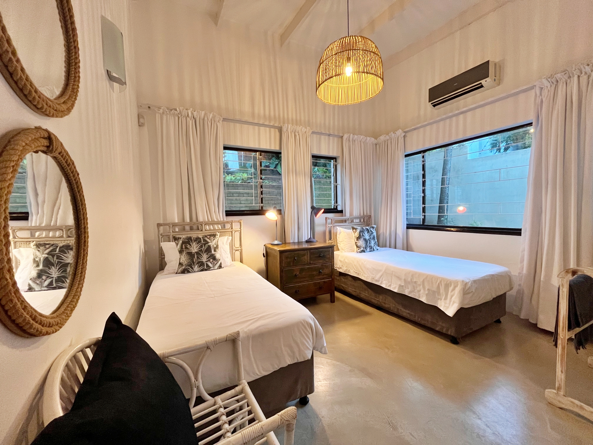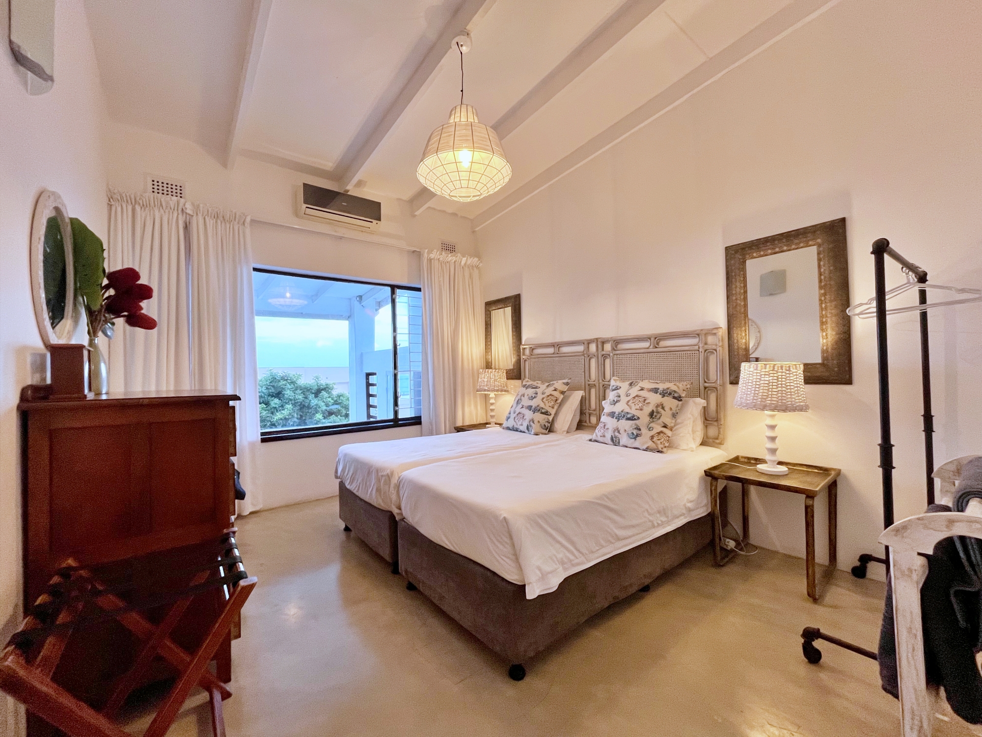 A lovely spacious & airy beach house with three large bedrooms, two reception rooms, fully equipped kitchen, large covered patio with built-in barbecue facilities and two separate studios on the lower ground offering accommodation for combinations of 6 to 10 people.The house is well equipped and decorated with a modern twist throughout providing incredible sea views and a 12 meter long lap pool in the garden.A balcony leads from the kitchen with the best sea views from the house and is ideal for those first morning coffees & spectacular sunrises over the Indian Ocean. The kitchen itself is equ