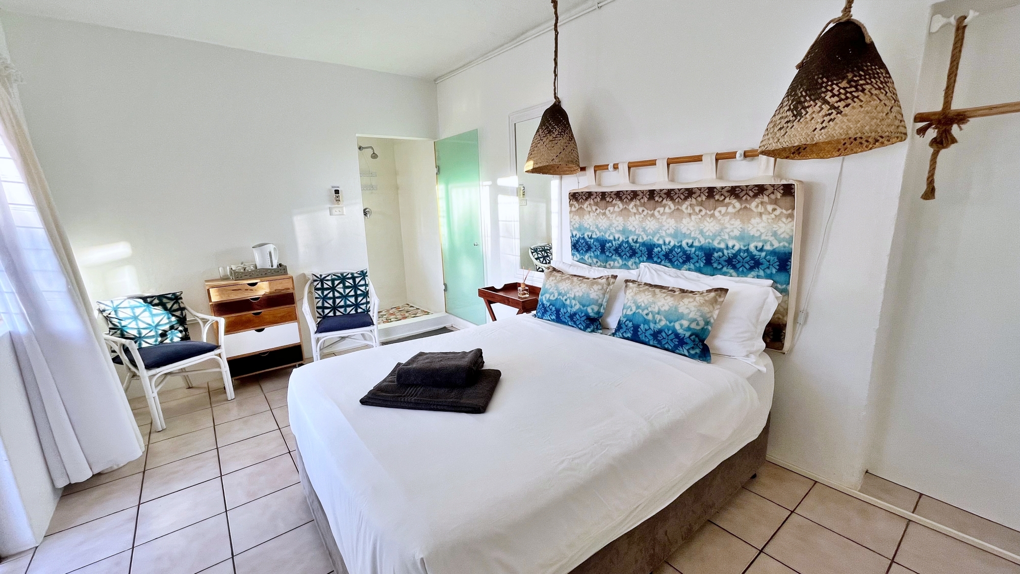 -No eating or drinking in bedrooms (beds are covered in white linen)