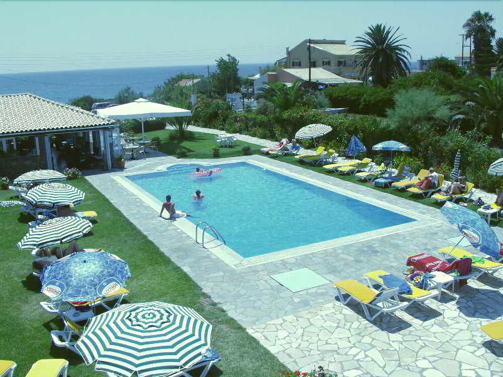 These family-friendly holiday apartments are situated just 100 metres from the enchanting beach of Aghios Georgios in the south of Corfu. The apartments are simply decorated and equipped with kitchenettes and furnished balconies where guests can take in splendid views of the sunset. The complex's large outdoor pool is surrounded by a manicured garden with sun loungers and parasols, providing the perfect place to soak up some sun, and guests can head to the beach for a variety of water sports including water skiing, banana boating and snorkelling. Alternatively, guests might take an island boat tour, a barbeque picnic at the beach, or an excursion to Perithia, Nymphes, or to Corfu's old town. For a delightful family holiday of sea and sun or a romantic couples' retreat, these apartments provide privacy and comfort for a relaxing and unhurried stay.