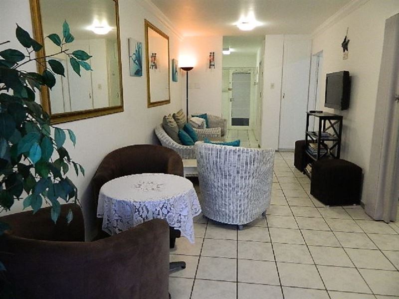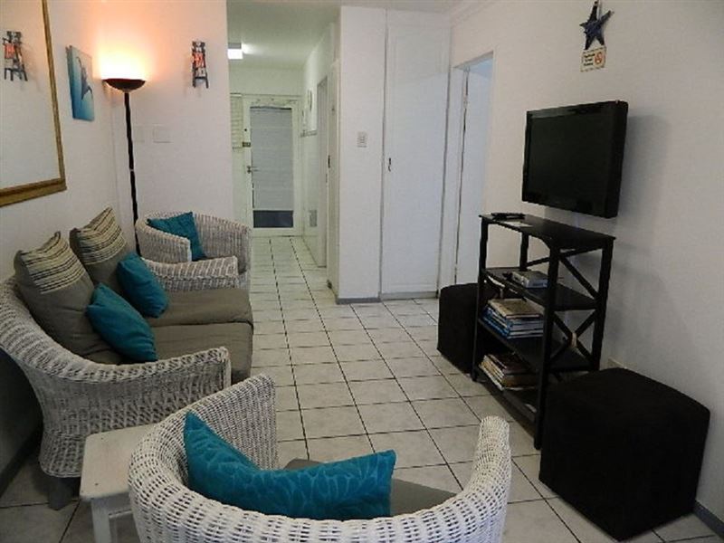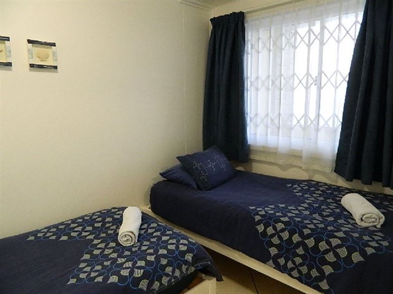 Blue Largo 21 is a modern two-bedroom, one-bathroom unit situated in Westbrook Beach. The second-floor unit features an open-plan lounge with DStv and a kitchen area with a fridge, a microwave, a stove and oven, a washing machine, and crockery and cutlery. Linen and bath towels are provided. Bring your own beach towels.There is a swimming pool and braai facilities in the complex as well as two undercover parking bays. There is a communal braai area as you are not permitted to braai on the balcony . This unit is 10 minutes from King Shaka International Airport and 9
