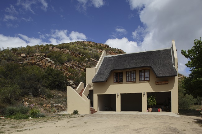 Blue Hill Escape offers self-catering accommodation on a 2300 hectare nature reserve, in the Kouga Mountains in the Western Cape. The property lies to the west of the Baviaanskloof Wilderness area and shares two borders with the reserve. Swartberg flat is a thatched flat offering first floor accommodation with views north towards the Swartberg Mountains. The double bedroom is large and bright, with easy access to the comfortable lounge area and kitchen facilities. The modern bathroom with a shower and a bath has a view of Bloukop Mountain and the nearby sand-olive slopes. Braai facilities are