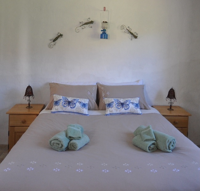 Blue Hill Escape offers self-catering accommodation on a 2300 hectare nature reserve, in the Kouga Mountains in the Western Cape. The property lies to the west of the Baviaanskloof Wilderness area and shares two borders with the reserve. Swartberg flat is a thatched flat offering first floor accommodation with views north towards the Swartberg Mountains. The double bedroom is large and bright, with easy access to the comfortable lounge area and kitchen facilities. The modern bathroom with a shower and a bath has a view of Bloukop Mountain and the nearby sand-olive slopes. Braai facilities are available in the communal garden. The flat is near the owner´s house and ideal for those wishing to book a meal. Swartberg comfortably sleeps two adults, a third adult or up to two children can be accommodated in a small room with a bunk bed. There is only a room divider between bedrooms and lounge.
