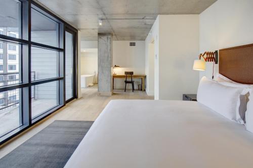 The rooftop bar floor-to-ceiling windows and easy subway access add major appeal to the non-smoking Boro Hotel. All 108 rooms at the 14-story Boro Hotel feature floor-to-ceiling windows hardwood floors plush bedding USB ports flat-panel DirecTVs and free Wi-Fi. Bathrooms are outfitted with porcelain-tiled baths and premium toiletries. Relax over drinks in the lobby lounge or up on the rooftop bar or enjoy a read in the library. There's also an in-house cafe and room service is an option. Additional perks include bike rentals and a business center with 24-hour printing services. Pets are allowe