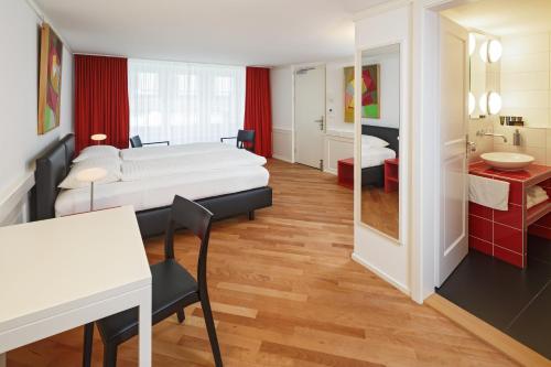 Offering city views Boutique Hotel Herzkammer is located in the city centre of Zürich and 180 metres away from Lindenhof Park. Free WiFi access is available. A complimentary continental breakfast is also at guests disposal.All units at the accommodation feature a seating area a desk and a flat-screen TV. The bathrooms are fitted with a shower a hairdryer and free toiletries.Other facilities offered at the property include a tour desk and luggage storage. Paid public parking is possible off site.The property is located 350 metres away from Bahnhofstrasse Shopping area and 550 metres away from Paradeplatz. Main Railway Station Zurich is reachable within an 8-minute walk and Zurich Airport within 11 km.