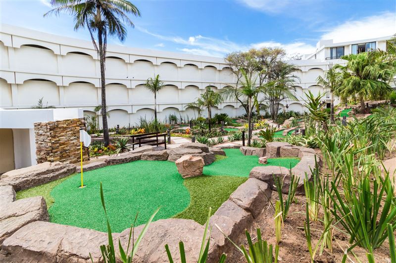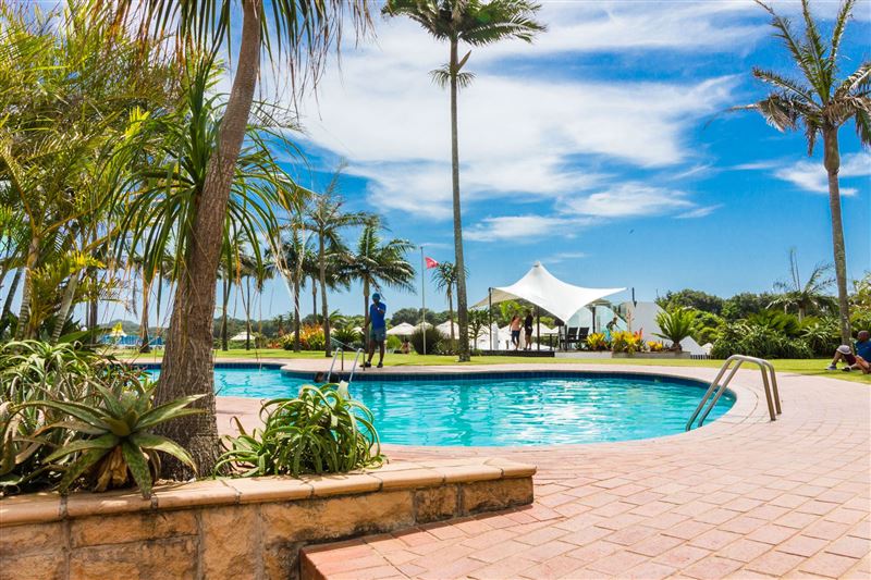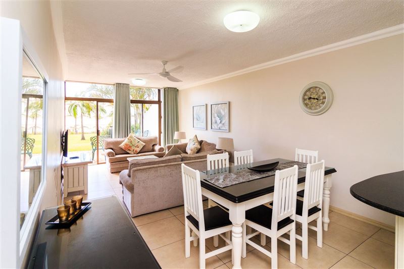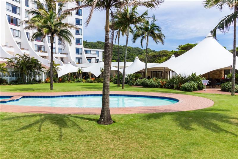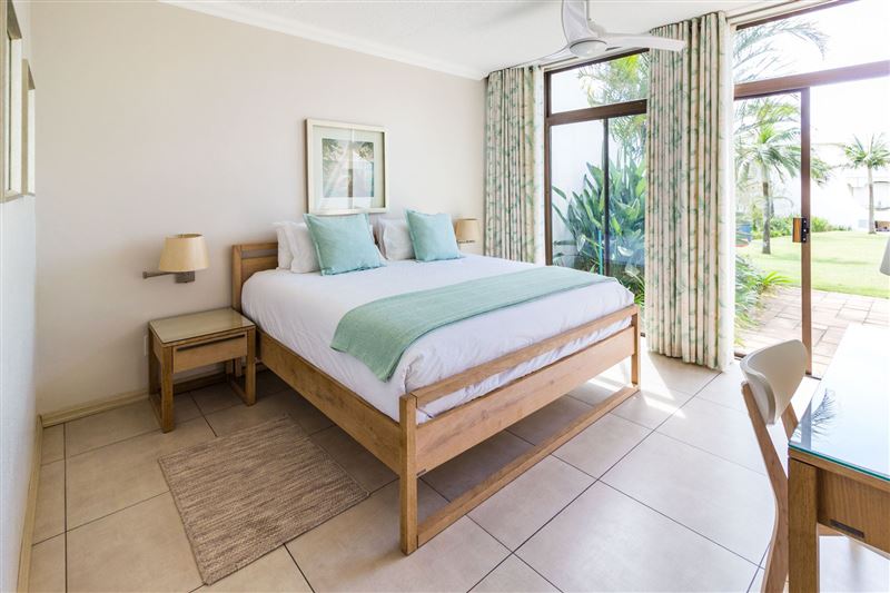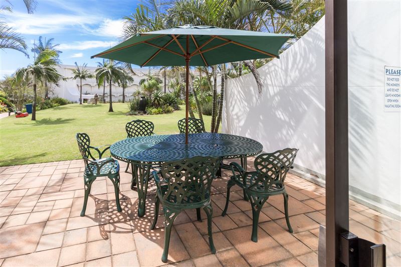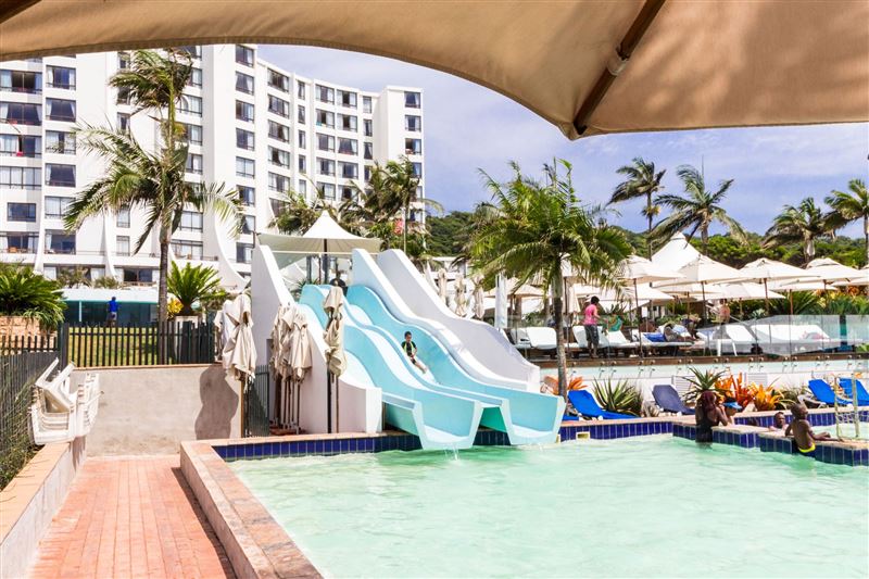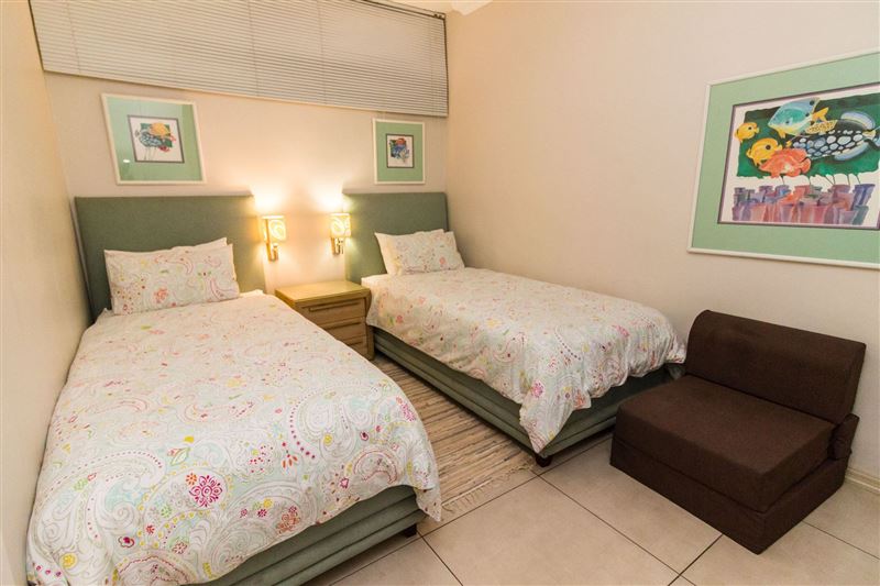 The popular Breakers Resort is located on Lagoon Drive, adjacent to the beautiful Lagoon Nature Reserve. The sea facing resort is 200 meters from the beach.The two-bedroom ground-floor unit, with a private patio, is well appointed and air-conditioned. The main bedroom has a king-size bed with an en-suite shower and dressing room. The second bedroom has two single beds and the bathroom consists of a toilet basin and bath. The modern open-plan kitchen and spacious living area has direct access to all the facilities.The Breakers resort has three swimming pools, a water sli