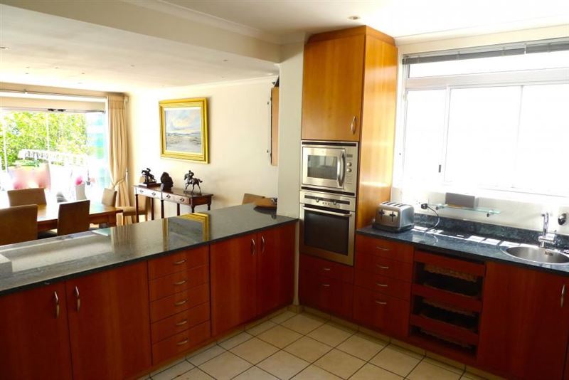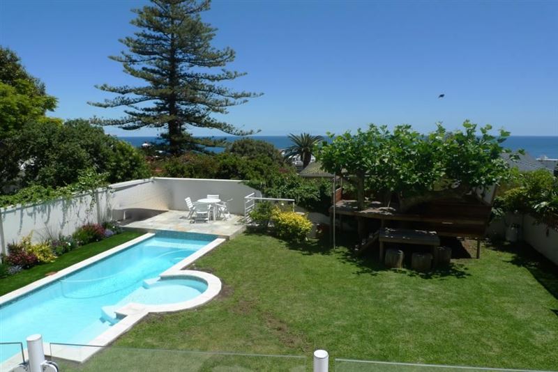 Brian’s Den at Funkey is a spacious and modern self-catering house, situated in the beautiful area of Fresney, just above Kloof Road. The accommodation is ideal for families and groups looking to be near the ocean, city and waterfront. The spacious house can accommodate eight people in five bedroom. The multi-level house has a main living area on the mid-level, with a balcony leading to down the back garden and swimming pool. The balcony and upper level enjoys views of the ocean in the distance. The house has a comfortably furnished lounge with a fireplace, TV with DStv