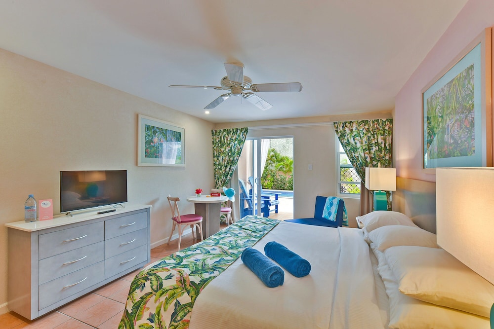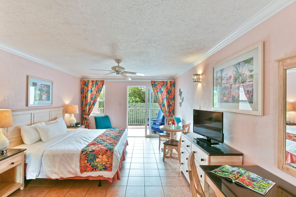 Spacious suites free Wi-Fi and an oceanfront location that's walking distance from town make the Butterfly Beach Hotel a charming choice for our guests. All 94 studio one- and two-bedroom apartments at this five-story property feature free Wi-Fi mini-fridges cable TVs and safes; select rooms include kitchenettes. Sink your teeth into fresh seafood at the on-site restaurant or fire up the guest grill for a beachside barbeque. Make a splash in the large outdoor pool unwind in the three hot tubs or lounge on the sundeck overlooking the ocean. The hotel offers karaoke and a daily happy hour and the tour desk can help with renting a car or information on area attractions. The Butterfly Beach Hotel is on Oistins Bay between Maxwell and Welches beaches on Barbados' southern coast. Walk 15 minutes to Oistins Town and watch the fishermen bring in their catch. Entertainment in St. Lawrence Gap is a mile up the coast. Hunte's Gardens is 25 minutes away and St. Nicholas Abbey is 40 minutes from the hotel.