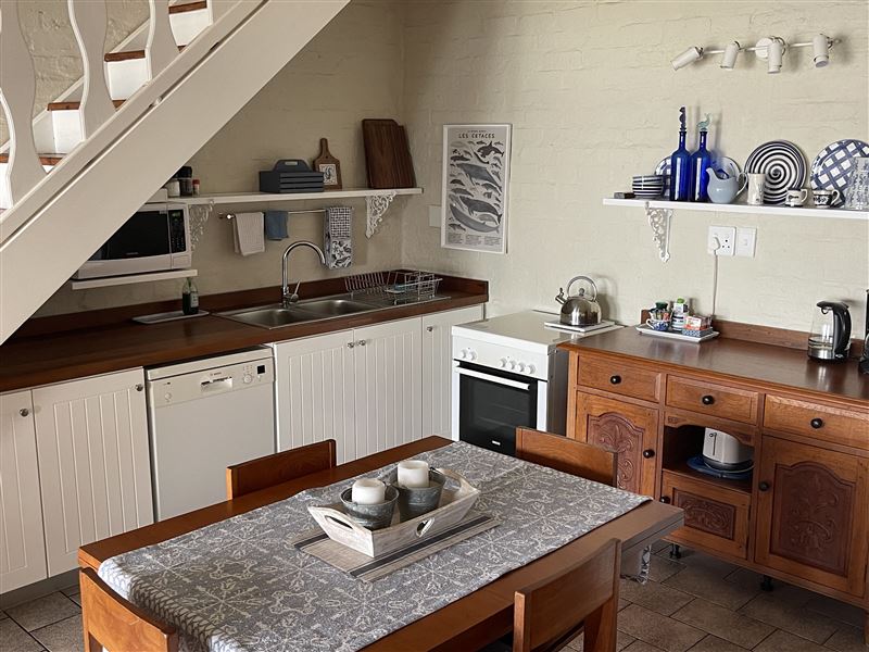 By Die See is located in a harbour town named Gordons Bay in the Western Cape province of South Africa.The free-standing duplex apartment can accommodate up to four guests and features an open plan kitchen with a microwave, an oven, a kettle, a fridge, a coffee machine and a dishwasher. There is also a dining area and a comfortable lounge leading onto a private patio overlooking the beach and ocean. Upstairs you have two bedrooms, the main bedroom with a Queen size bed and the second bedroom has two Single beds. There is a shared bathroom with a toilet and a shower,