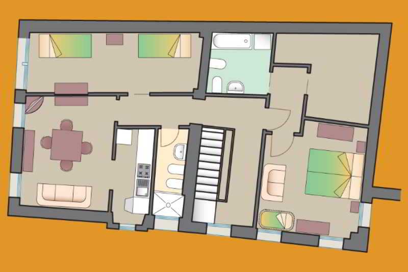 The apartment Ca delle Paste is in the Castello area of Venice, 15 minutes from San Marco Square.The area is well served by public transport, with the nearest vaporetto stop "Rialto".Furthermore, the area is provided with all kinds of business and typical restaurants, pizzerias and osterias.The apartment is on the first floor of a building with separate entrance. It consists of a spacious entrance with internal staircase, living room, fully equipped kitchenette, double and twin room, two bathrooms (one with bath and one with shower).The services offered are WiFi internet connection with fee, TV, safe, hairdryer, ironing set and complimentary toiletries.