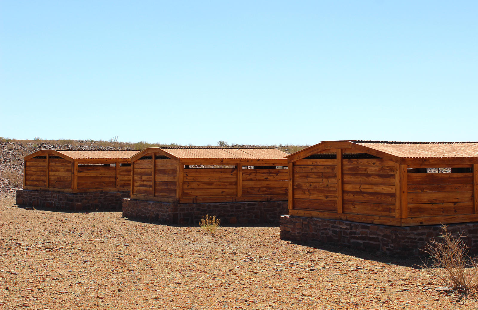 The other camps namely Camp Battlesnake, Koelkrans and Horseshoe Camp each have seven twin-bedded huts and the main hut which has covered seating area and a small kitchenette, as well as a fireplace.