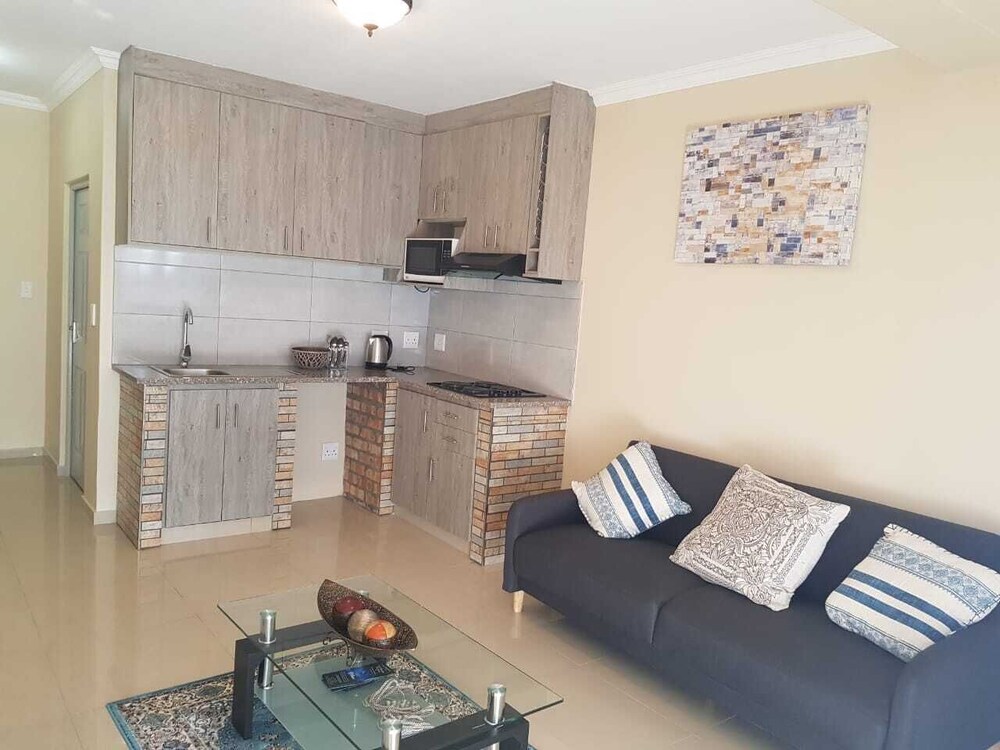 Cape Breeze Holiday Apartments offers self-catering accommodation in a studio apartment in the Cape suburb of Brooklyn. It is close to Lagoon Beach and several attractions such as Table Mountain, the V&A Waterfront and the city centre.The accommodation is offered in four studio apartments with an open-plan layout on the ground floor. The apartments each can accommodate two guests. The bedroom has a queen-size bed and an en-suite bathroom with a shower, toilet and basin. The lounge area has a sofa and flat-screen TV. The kitchenette is equipped with a hob, microwave, ket