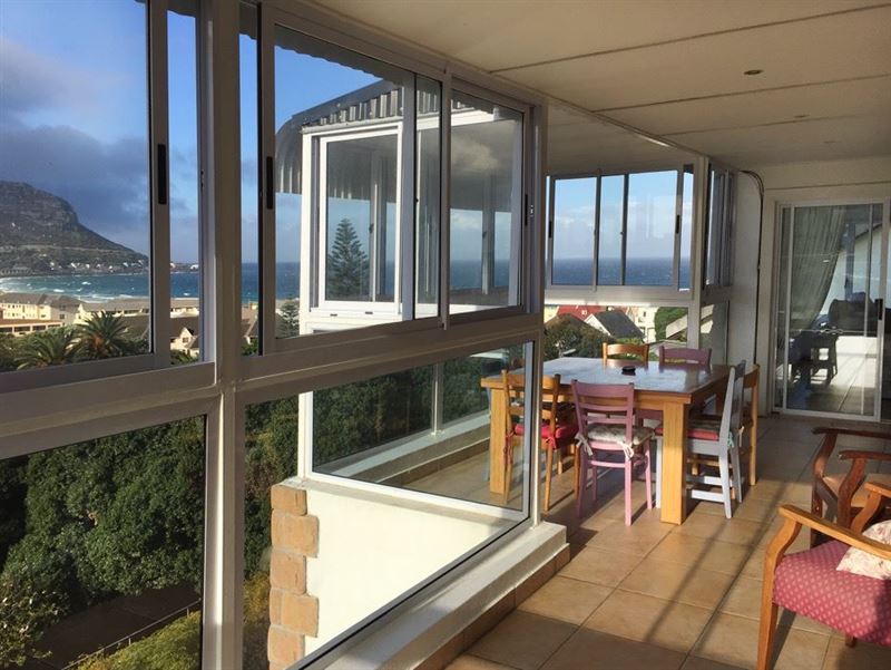 Nestled on the slopes of Elsie’s Peak, this spacious, upmarket apartment is situated on private property and has sea views across False Bay to the Hottentots Holland Mountains.The comfortably furnished apartment offers fabulous sea views from most of the rooms. The open-plan dining and lounge area is the perfect place to sit back and enjoy the wonderful sunlit afternoons. Each room leads onto a beautiful, warm deck where you can eat breakfast with a loved one while you witness the most glorious sunrises. The apartment has three spacious, attractively furnished suites and two bat