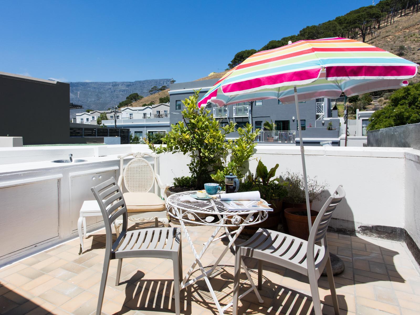 This luxury two-bedroom duplex apartment is located in a secure complex in the heart of the city. From the wraparound balcony, you can enjoy sweeping panoramic views of Table Mountain, Devil’s Peak, Lions Head, the Houses of Parliament and the Company Gardens. In addition, the apartment is conveniently close to various restaurants, the V&A Waterfront and a MyCiti bus stop.This modern, luxurious apartment comprises two en-suite bedrooms, and an open-plan kitchen, lounge and dining area. The main bedroom is an upstairs loft-style room with an extra-length king-size bed, and an en-