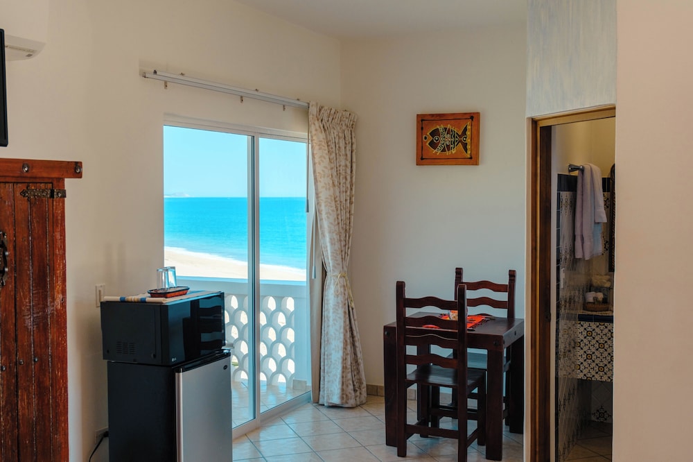 The hotel is located on Costa Azul Beach, 3 minutes from the Mega Plaza. Within a short walk from the hotel, guests will find shops, restaurants and pubs, and there is public transport right in front of the establishment. The nearest town is Cabo San Lucas, 25 minutes' drive away, and El Arco is approximately 30 minutes' drive away from the hotel.This air-conditioned beach hotel comprises a total of 15 rooms. It offers a garden, 24-hour reception, wireless Internet access and a medical service. Younger guests will enjoy the children's playground. A laundry service is available for a fee. Those arriving by car may leave their vehicles in the hotel car park.All of the spacious and comfortable rooms are en suite with a shower and a hairdryer. Each room offers a double or king-size bed, direct dial telephone, cable TV, radio, Internet access, a safe and an ironing set. Rooms also come equipped with a fridge and tea and coffee making facilities. Further standard features of accommodation units include individually regulated air conditioning and a balcony.The hotel features an outdoor swimming pool and a terrace with sun loungers and parasols laid out by the water's edge. Guests can treat themselves to a soothing massage (fees apply). For a fee, guests can try their hand at a range of water sports, including surfing, windsurfing and canoeing. Fans of the fairway can also enjoy a round of golf, just 3 minutes away from the hotel at the Mayan golf course (fees apply). Moreover, sun loungers and parasols are available for hire on the nearby sandy beach.Guests can enjoy a drink at the café, and dine in the restaurant. A continental buffet breakfast is served each morning at the hotel. Lunch can be taken à la carte and dinner can be selected from various menu options.