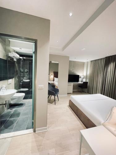 Center Rooms Oresti is set in the center of Tirana, just 50 meters from the Skanderbeg Square. It offers air-conditioned rooms and a garden with a seating area. All rooms comprise an LCD TV with satellite channels, a computer and a fridge. Most units have a balcony, while each provides a private bathroom with a shower. Various shops, restaurants and bars are a short walk away. National History Museum is 100 meters away. A bus station is 200 meters away, while Tirana Airport is 15 km from the Oresti.