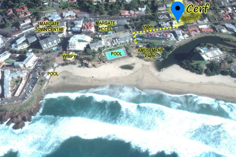 This newly renovated complex has a splash pool and braai area with beautiful sea views on the rooftop, and is just a 150m from Margate Beach. It is also located out of the noise and bustle of town centre, while being a conveniently close stroll to town with its selection of restaurants, take-aways, pubs, nightclubs, fishing pier and popular entertainment beach.This contemporary and tastefully furnished first floor apartment, with air conditioning throughout, comfortably accommodates four guests in two bedrooms - the main bedroom with a sliding door to the balcony and a double bed