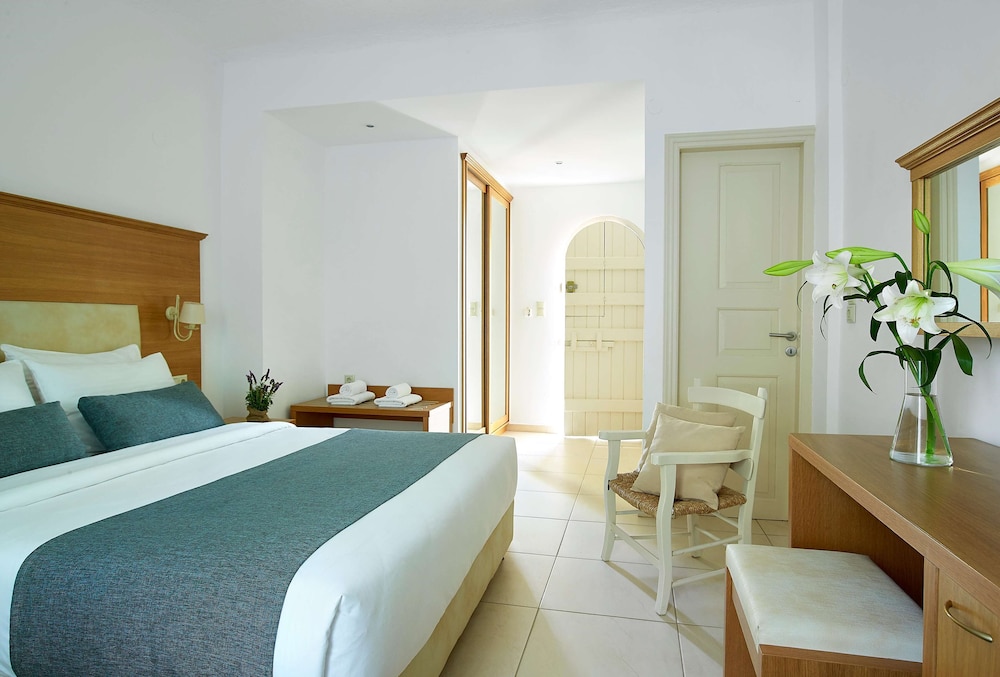 Built to resemble a miniature village and surrounded by olive trees and oleander bushes, this enchanting hotel boasts rustic Cretan architecture, a fantastic seaside location, and traditional hospitality. The hotel is located on the southern coast of Crete by one of the island's longest beaches, and is only eight kilometres from the shops and restaurants of Ierapetra.Rooms are spacious, bright and elegantly decorated with modern amenities and views of the beautiful gardens. The hotel's Cretan tavern is located near the beach, offering stunning views to the Libyan Sea and delightful local cuisine including dishes such as barbequed meats, cheese pies, lamb with artichokes, and fresh sea food. Guests can spend sunny afternoons at the beach, or enjoy a scenic walk organized by the hotel and followed by a picnic on the beach, all on a marvellous seaside holiday in Crete.