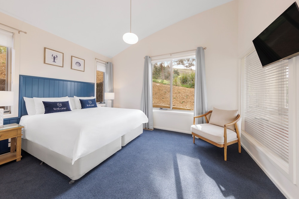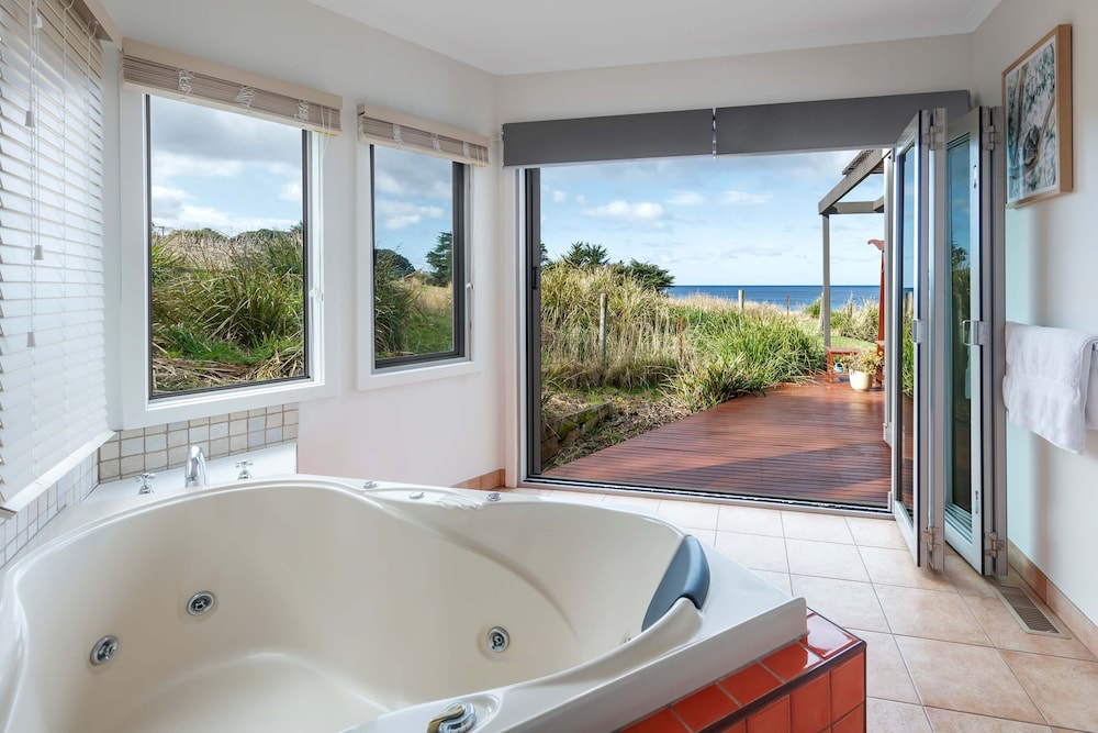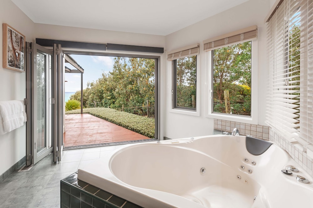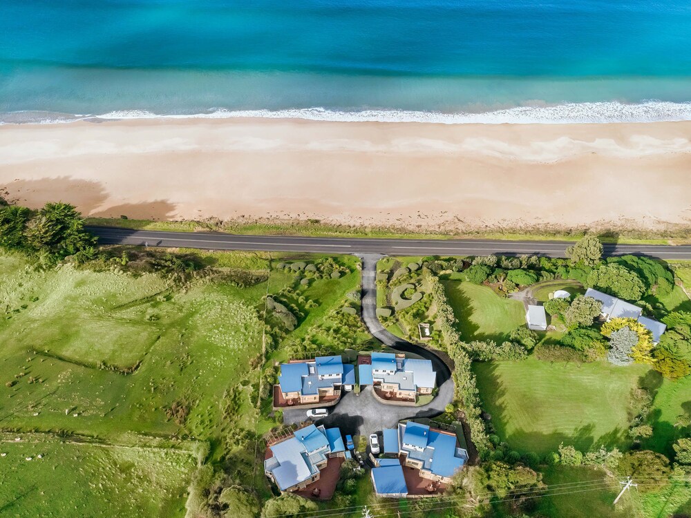 Set on 100 acres surrounded by rolling country side, the architecturally designed property offers intimate fully self-contained accommodation beneath a wave-shaped roofline that echoes the ocean swell. Please note this is a non smoking property.