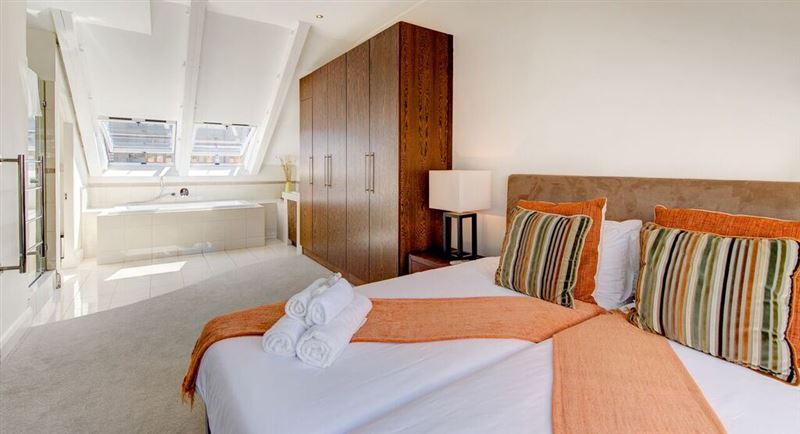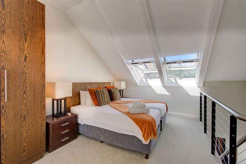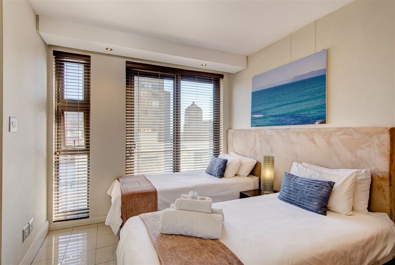 The revitalized heart of Downtown offers this luxurios self-catering apartment which overlooks numerous national monuments within the Old Town environment of The Mother City. The skyline views include the Houses of Parliament, the carefully preserved Slave Lodge, St. George’s Cathedral and The Company Gardens.The self-contained apartment comprises two bedrooms; the main bedroom has a king-size bed and the second bedroom has twin beds; both bedrooms have en-suite bathrooms. There is an open-plan lounge and dining room with a fully equipped kitchen. The lounge offers a TV with DSt