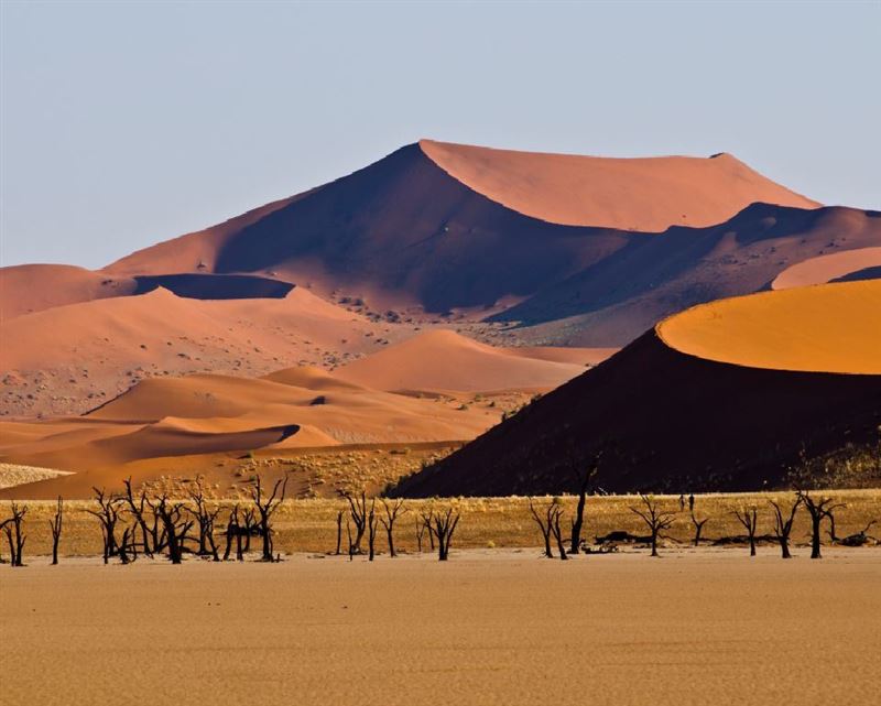 Early morning visit to Sossusvlei which is surrounded by high dunes and is filled only with water in years when exceptionally good rainfall is received. We visit the Sesriem Canyon.
