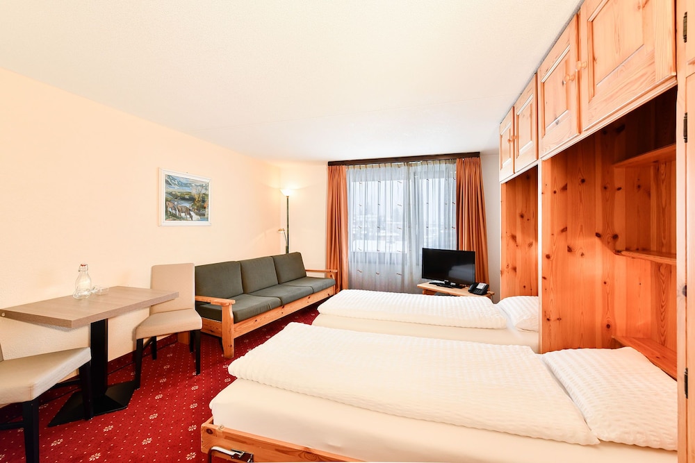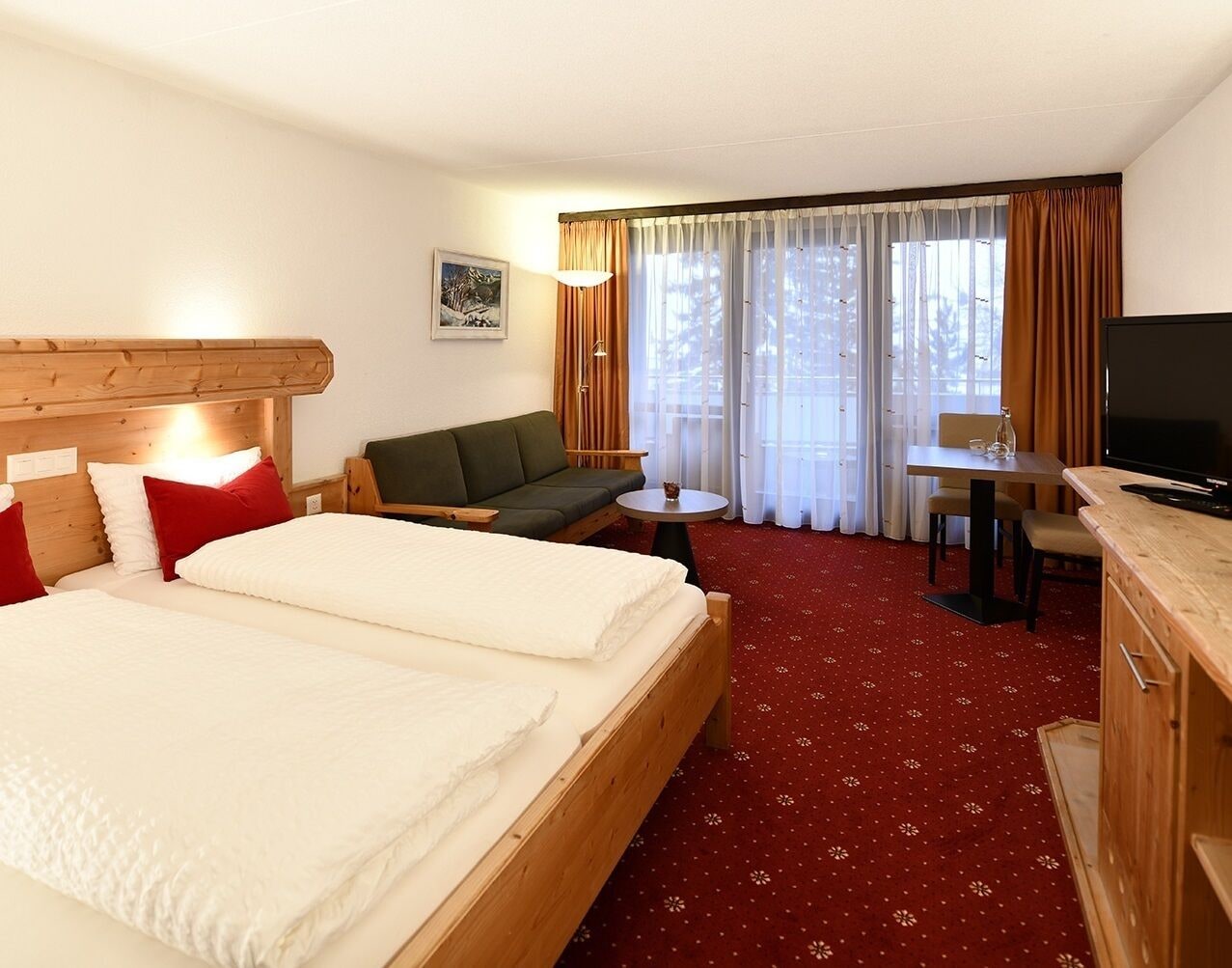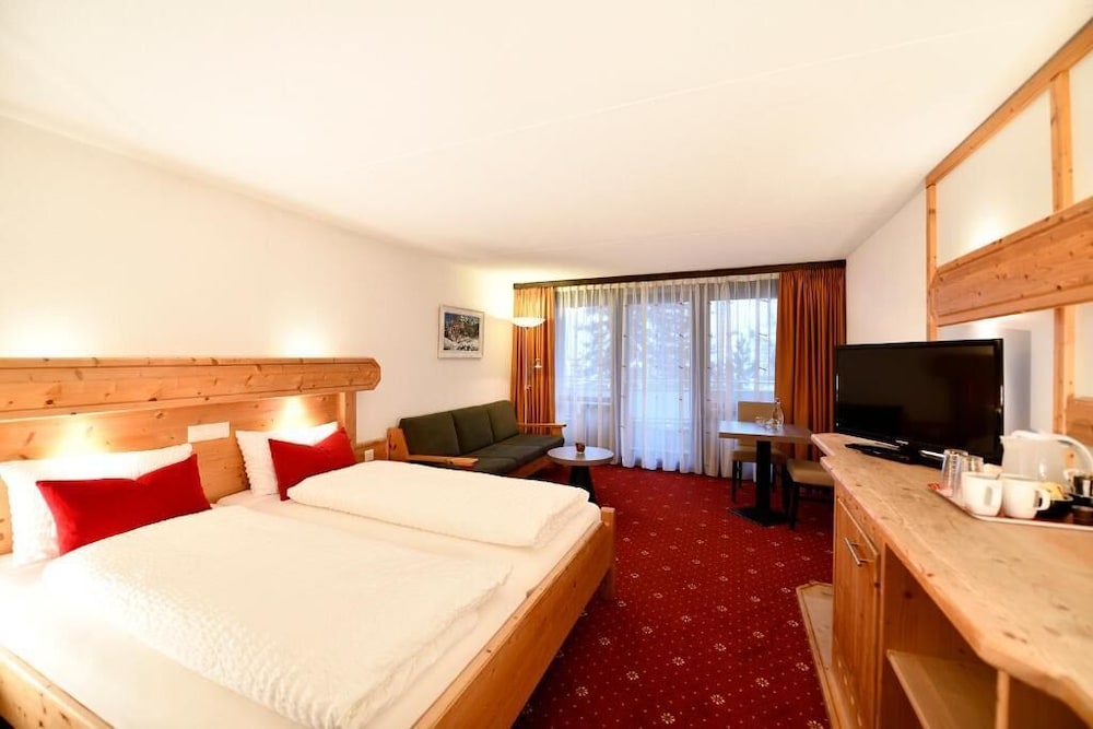 The hotel is only a short walk from the centre of Davos, a municipality in the district of Prättigau/Davos in the canton of Graubünden, Switzerland. It boasts a privileged situation just 60 metres from the Jakobshornbahn ski lift, cross-country ski tracks and winter hiking trails. Guests will find a bus stop a few steps away, providing easy access to other attractions in the area, such as Parsenn, Pischa and Rinerhorn mountain cableways. Families and sports enthusiasts will appreciate the excellent onsite facilities as well as the friendly atmosphere that will make them feel right at home. The tastefully decorated rooms are the best place to relax after a long day of sightseeing. This comfortable hotel offers an extensive entertainment programme for adults and the younger visitors.Please note that is seasonally closed between the beginning of April and Mid-May.