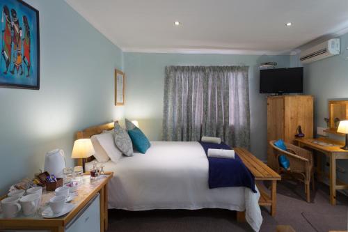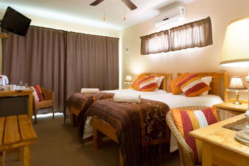 Your hosts, Alex and Rene Dumas, will offer you a warm welcome at Colesview Guest House where the comfort and satisfaction of their guests is their top priority. We can accommodate 25 people in eight stylishly decorated bedrooms.The rooms all have separate entrances and sleep two to six people. The rooms are equipped with double or twin beds, en-suite bathrooms, ceiling fans, air-conditioners, heaters, DStv, electric blankets in winter, fridges, wall safes and tea and coffee-making facilities. Cots, hairdryers and extra mattresses are all available on request.There i